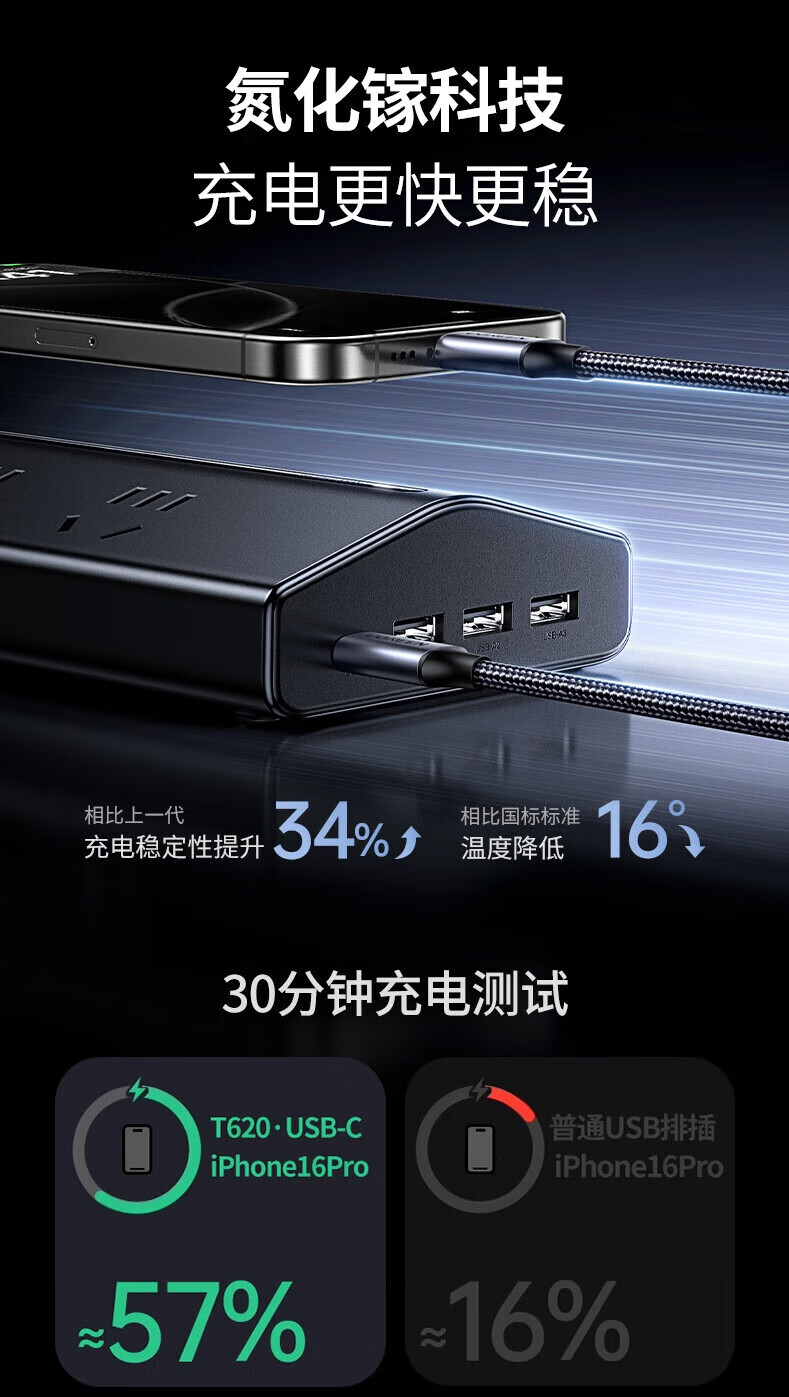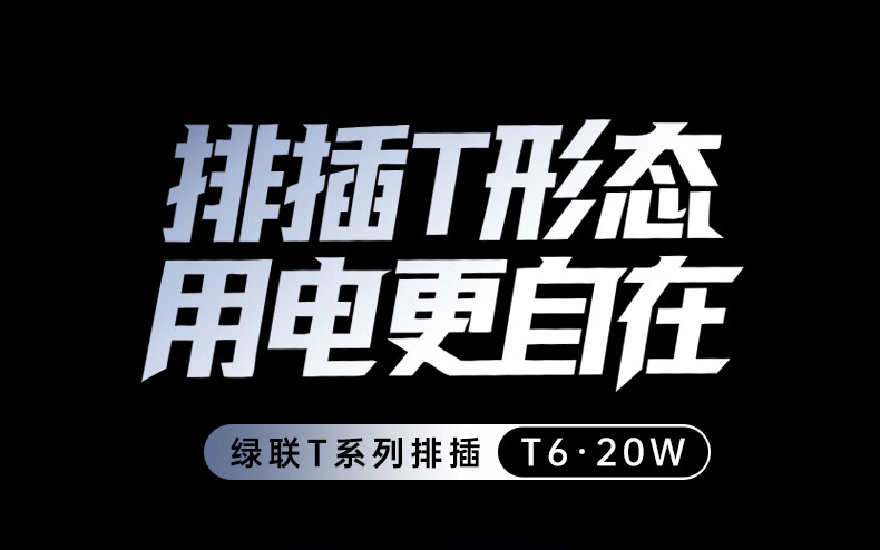 电脑、办公  > 外设产品  > 插座/转换器  >  绿联/UGREEN  >  绿联T6插排新国标多功能usb梯形排插20W氮化镓快充插座过载保护电脑桌面充电站接插线板6位总控1.5米 T620/个
