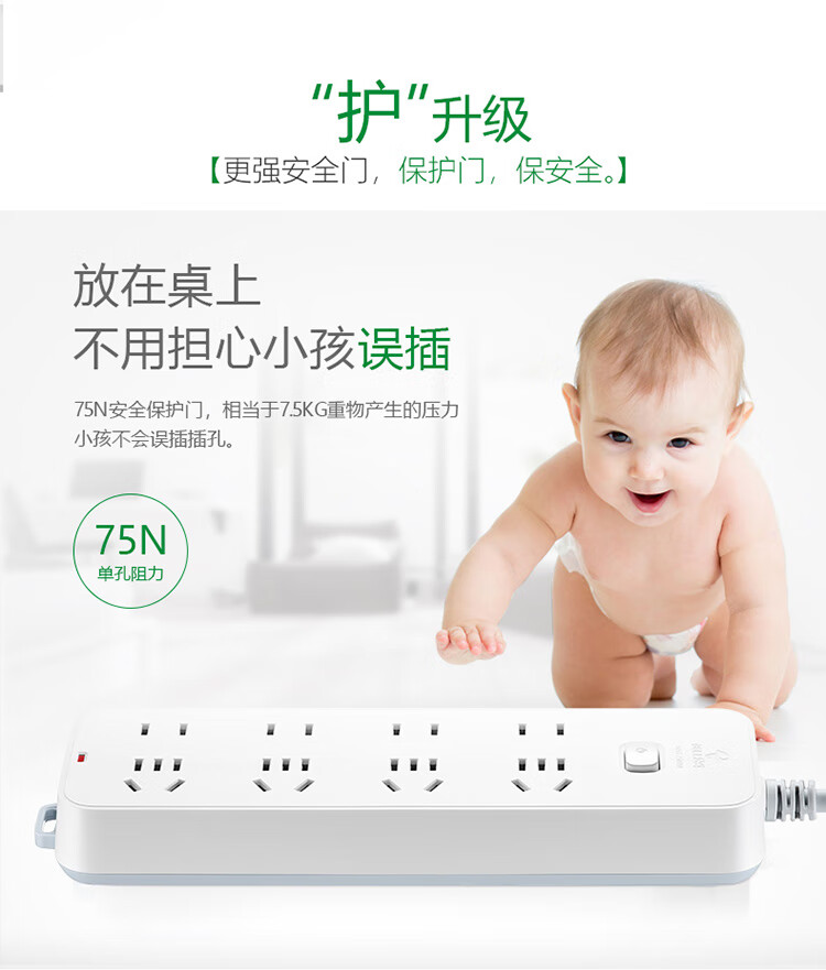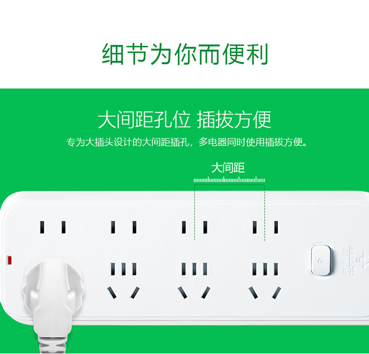 商品名称: 公牛(BULL)插座/插线板/插排/排插/接线板/宿舍家用桌面拖线板 3C认证 8位总控开关全长1.8米 GN-B3440 GN-B3440/个