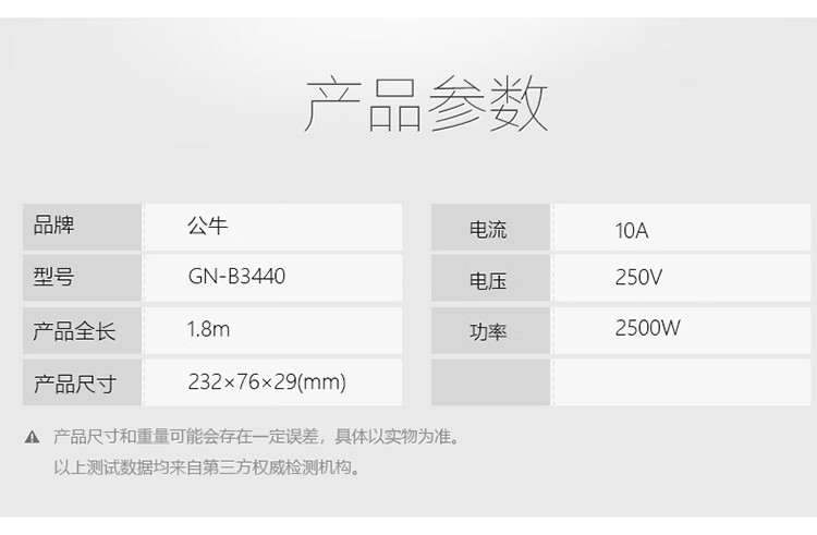 • 商品名称:公牛(BULL)插座/插线板/插排/排插/接线板/宿舍家用桌面拖线板 3C认证 8位总控开关全长1.8米 GN-B3440 GN-B3440/个