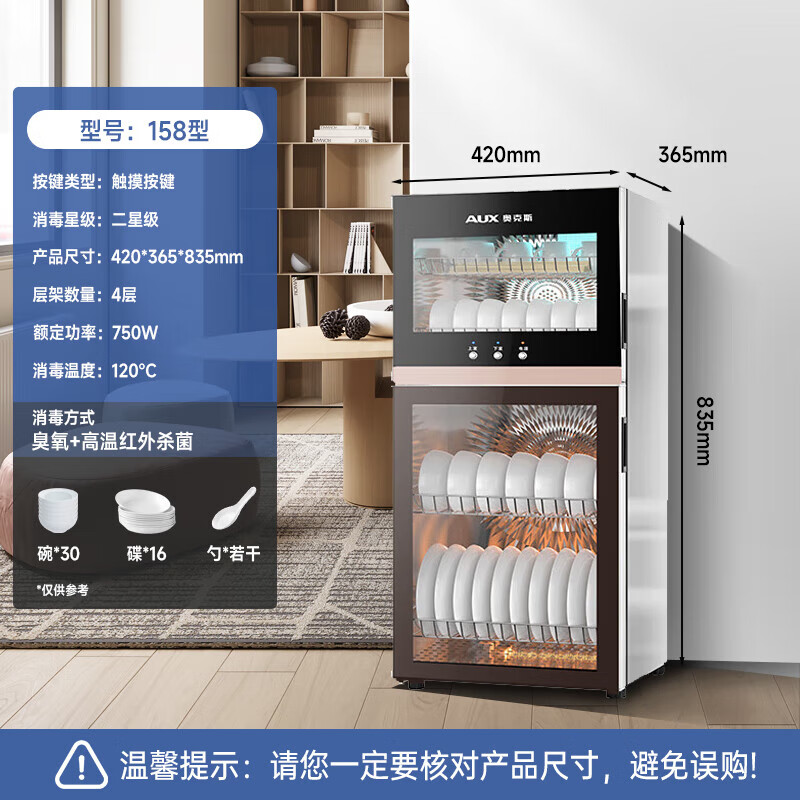 奥克斯(AUX)消毒柜高温商用大容量双门90L家用立式台式消毒碗柜厨筷餐具茶杯母婴级奶瓶消毒柜ZTP108-A02 ZTP108-A02/台