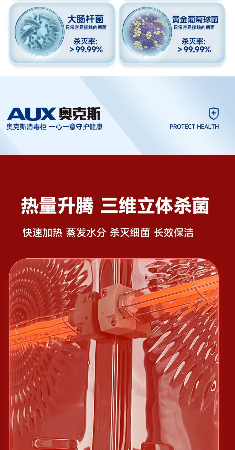 家用电器  > 厨卫大电  > 消毒柜  >  奥克斯/AUX  >  奥克斯(AUX)消毒柜高温商用大容量双门90L家用立式台式消毒碗柜厨筷餐具茶杯母婴级奶瓶消毒柜ZTP108-A02 ZTP108-A02/台