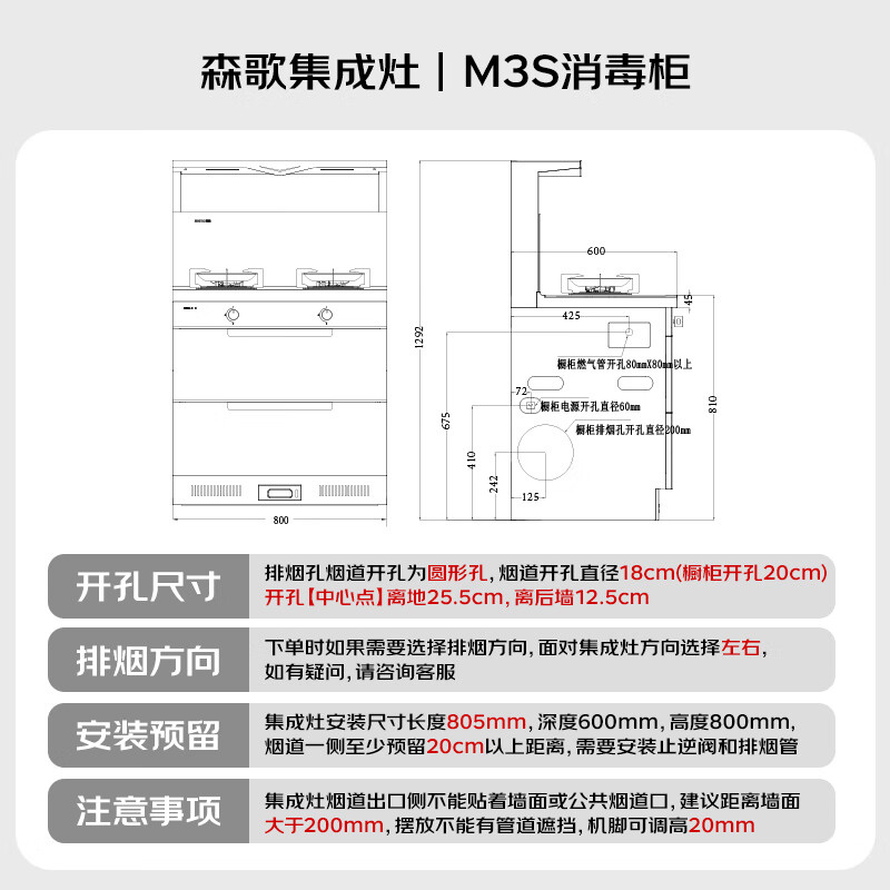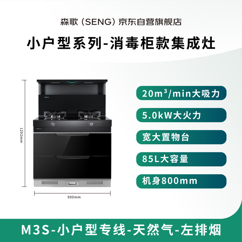 • 商品名称:森歌(SENG)【小户型系列】M3S天然气左排烟二星消毒柜集成灶一体灶储物柜油烟机燃气灶嵌入式双灶厨房套装 JJZT-M3/台