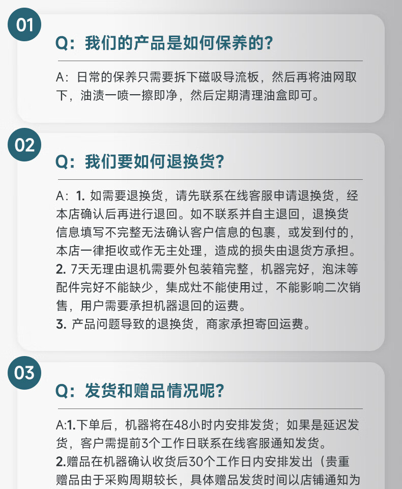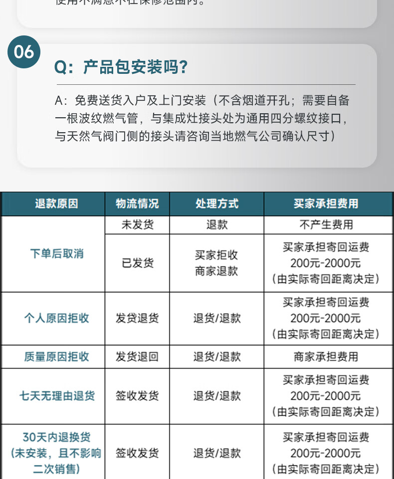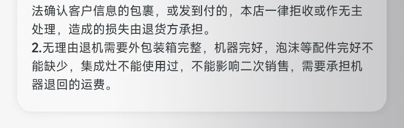包装清单: 集成灶1台 使用说明书1份 保修卡1份 合格证1份 止回阀1只 抱箍1只 头部固定挡盖2只
