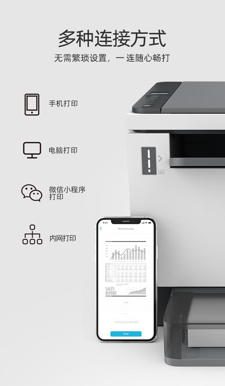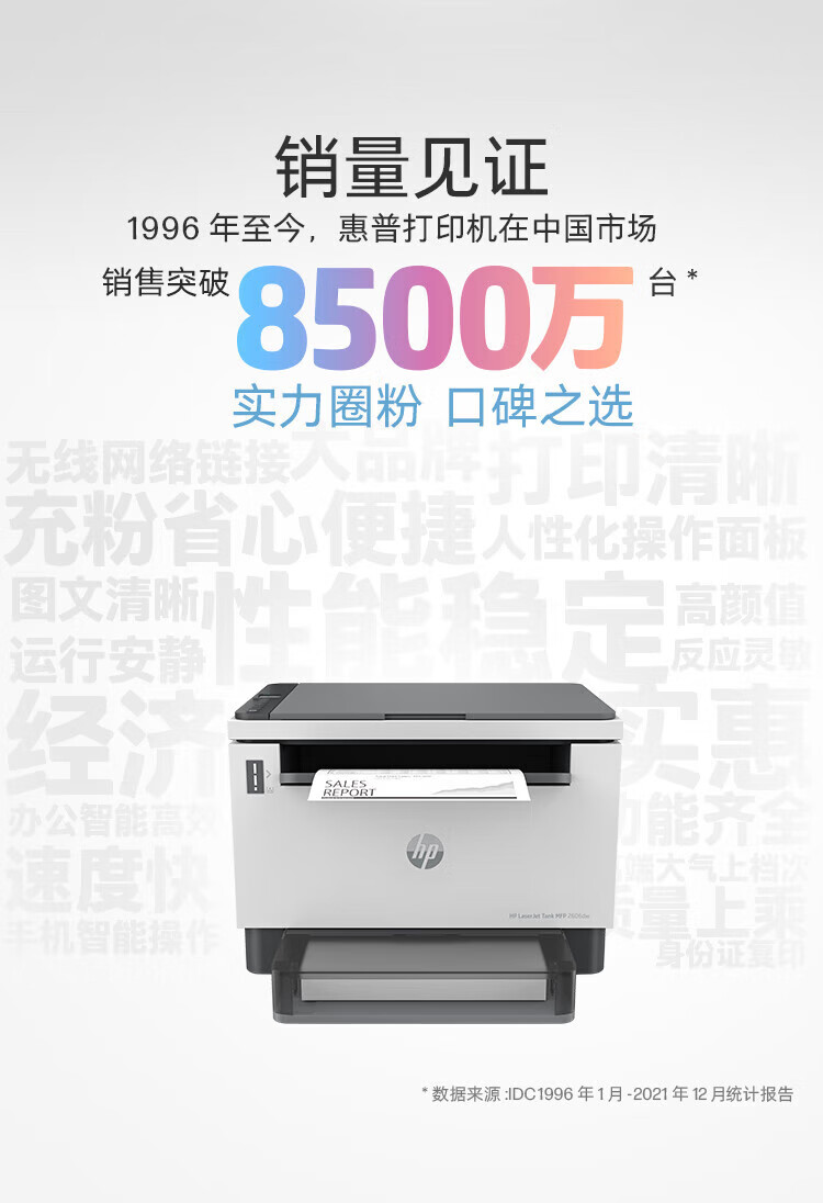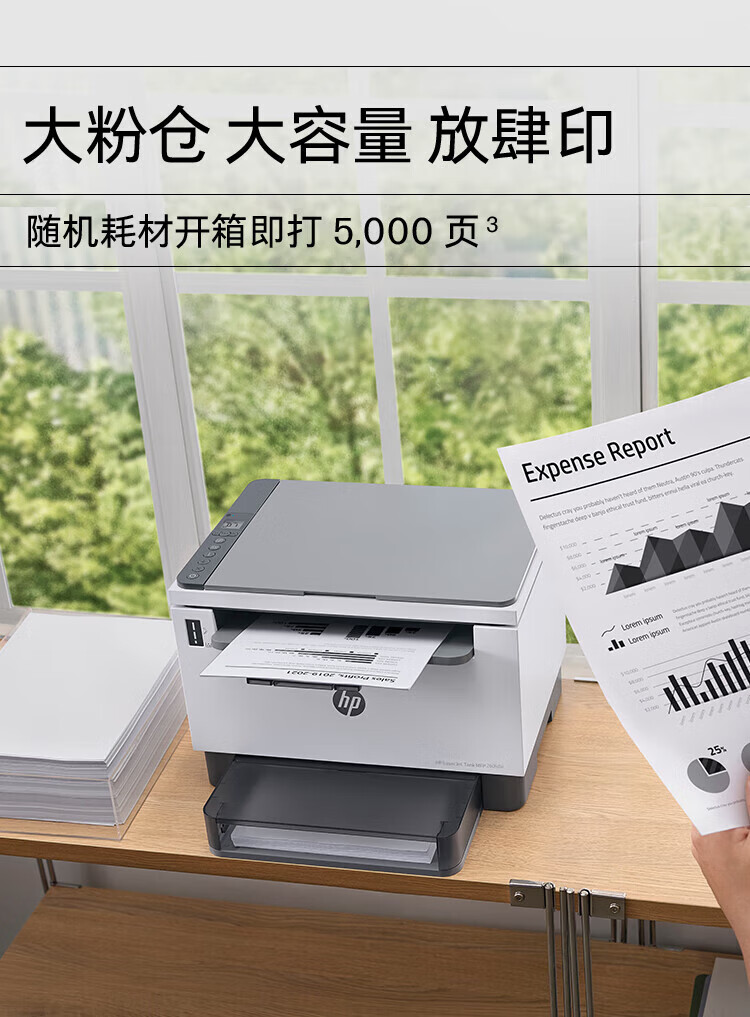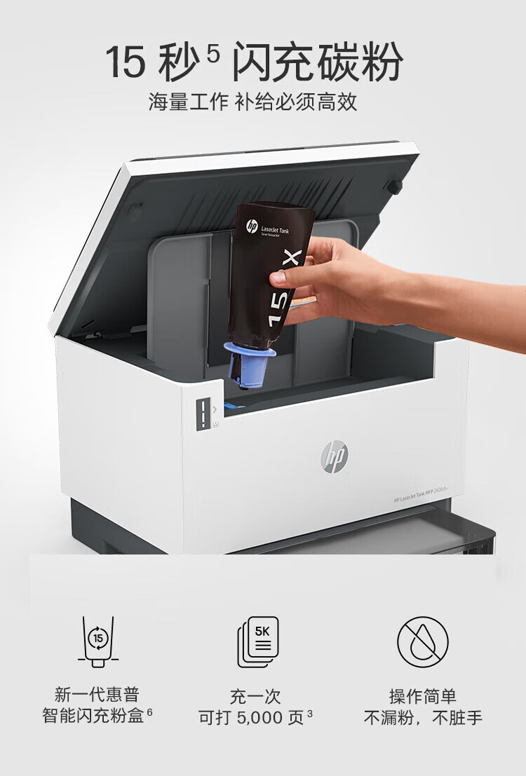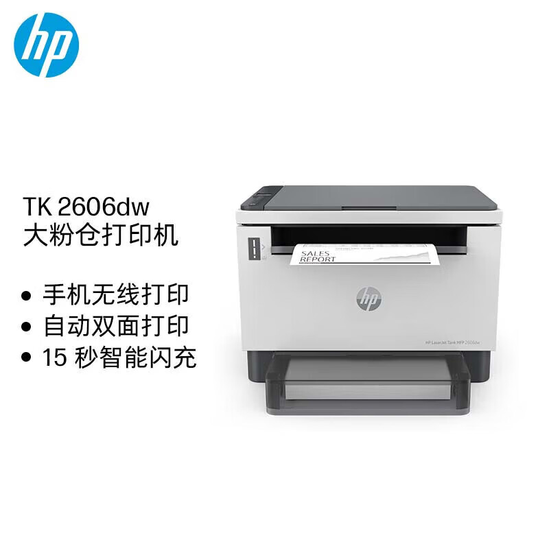 电脑、办公  > 办公设备  > 打印机  >  惠普/HP  >  惠普(HP) 打印机 2606dw A4黑白激光复印机扫描机一体机 家用办公 无线 可加粉 2606dw 双面/无线 LaserJet Tank MFP 2606dw/台