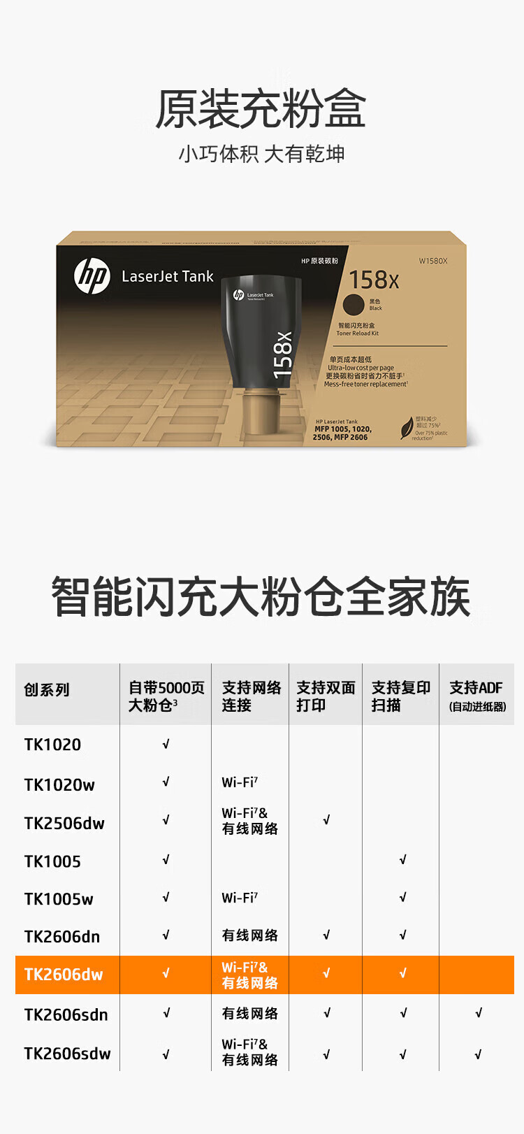 惠普(HP) 打印机 2606dw A4黑白激光复印机扫描机一体机 家用办公 无线 可加粉 2606dw 双面/无线 LaserJet Tank MFP 2606dw/台