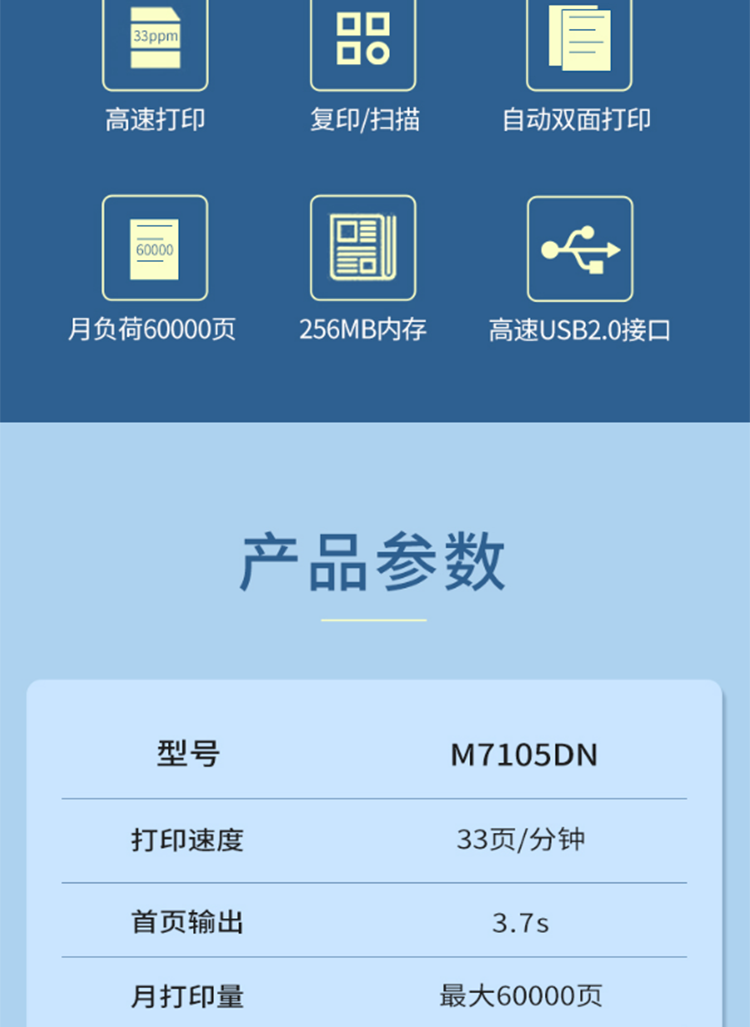 商品名称: 奔图(PANTUM)M7105DN,黑白激光一体机,打印速度30ppm、USB+NET M7105DN/台