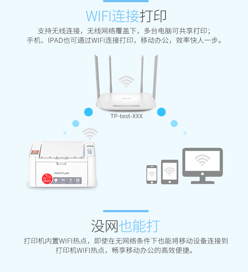 电脑、办公  > 办公设备  > 打印机  >  奔图/PENTUM  >  奔图(PANTUM)A4黑白激光打印机 高速打印 共享打印 便捷打印 自动休眠 节能省电 P2506W USB+WIFI P2506W/台