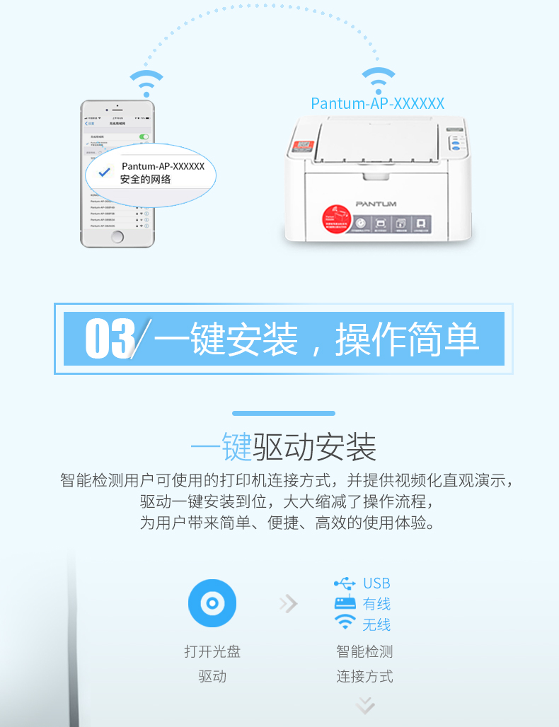 商品名称: 奔图(PANTUM)A4黑白激光打印机 高速打印 共享打印 便捷打印 自动休眠 节能省电 P2506W USB+WIFI P2506W/台