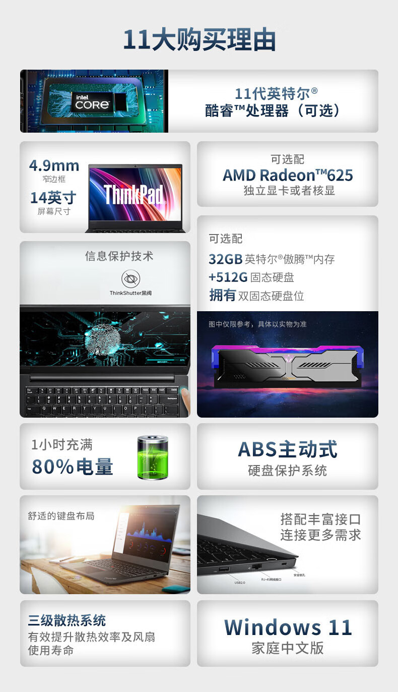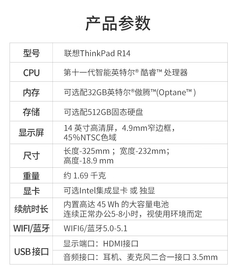电脑、办公  > 电脑整机  > 笔记本  >  联想/ThinkBook  >  联想 R14 【E14升级款】14英寸轻薄商务笔记本 定制:i5-1135G7 16G 512GSSD 2G独显 WIN11H ThinkPad R14/台