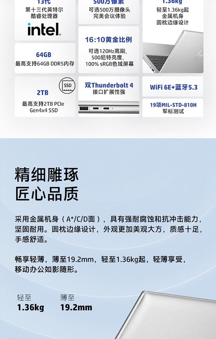 电脑、办公  > 电脑整机  > 笔记本  >  惠普/HP  >  惠普笔记本 Elitebook 840G10 14英寸商用高端轻薄笔记本办公电脑(i5-1335U 16G 1TSSD W11H)标机 840G10/台