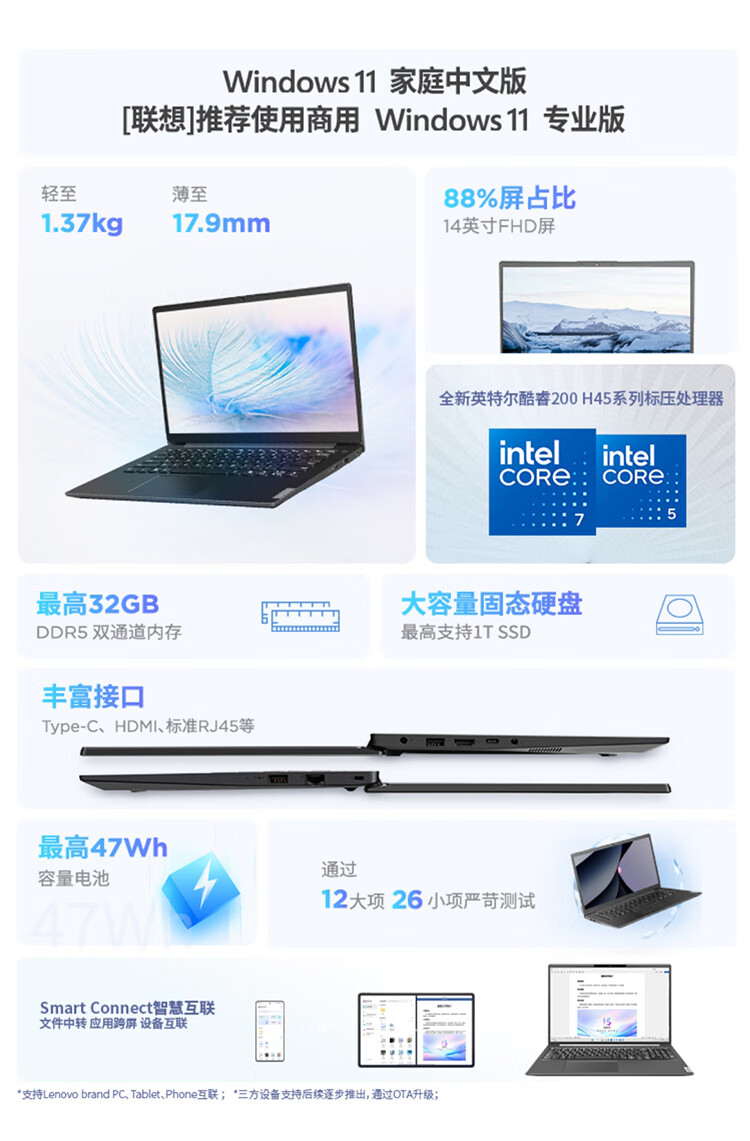 电脑、办公  > 电脑整机  > 笔记本  >  联想/ThinkBook  >  联想(LENOVO)昭阳·悦Pro14 标压酷睿7-240H 32G内存 1TB固态 核显 14英寸屏商务办公上网学习笔记本 定制升级 昭阳X3-14/台