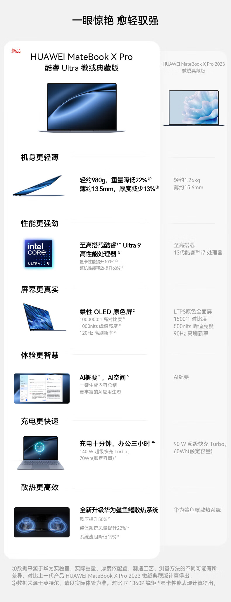 电脑、办公  > 电脑整机  > 笔记本  >  华为/HUAWEI  >  华为MateBook X Pro酷睿 Ultra 微绒典藏版笔记本电脑 980克超轻薄/OLED原色屏 Ultra7 16G 1T 宣白 MateBook X Pro/台