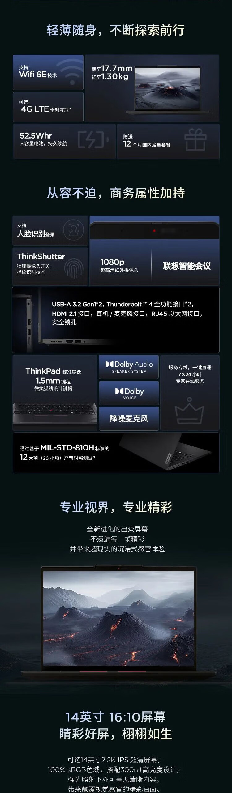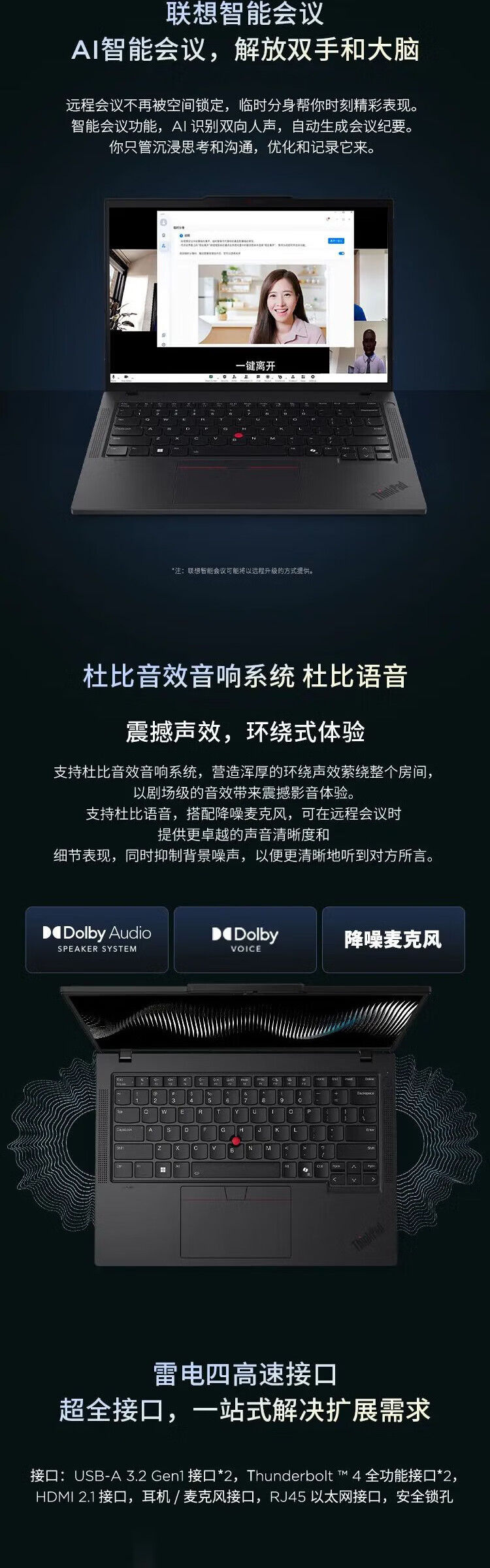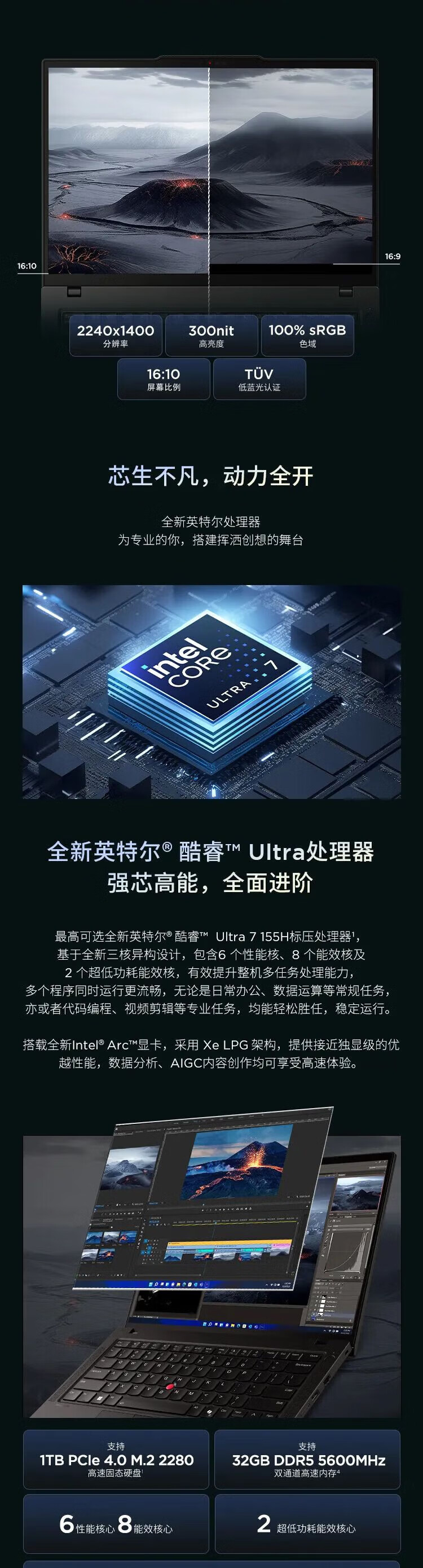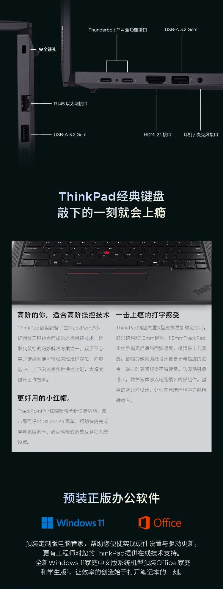 电脑、办公  > 电脑整机  > 笔记本  >  ThinkPad  >  ThinkPad T14 AI Gen5 14英寸T系列工程师高性能轻薄本笔记本电脑 定制:UItra7-155H 64G 1TB 4G互联 2.2K T14/台
