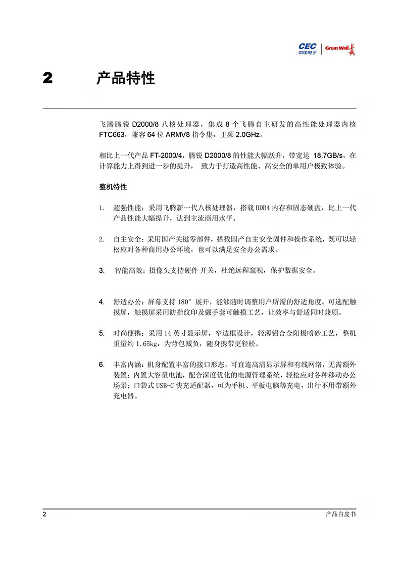 • 商品名称:长城国产化信创笔记本 CN140A2 飞腾D2000/16G/512G/2G/14吋/3年保修/麒麟国防系统永久激活3年服务 CN140A2/台