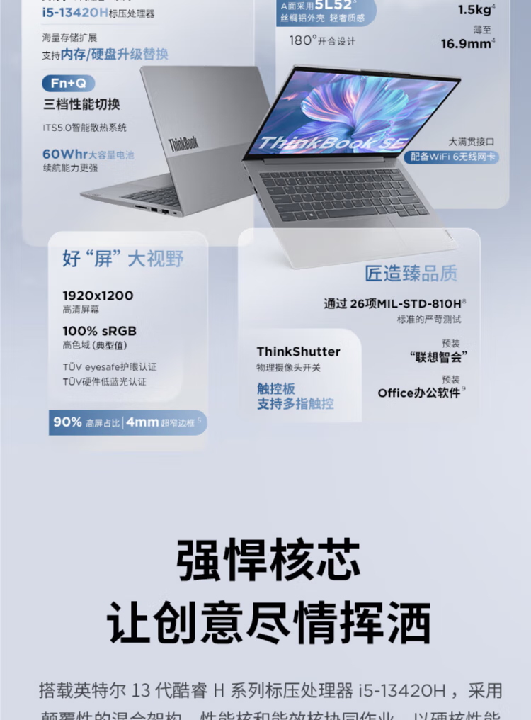 电脑、办公  > 电脑整机  > 笔记本  >  联想/ThinkBook  >  联想(Lenovo)ThinkBook 14 SE 14英寸轻薄商务办公笔记本电脑 i5-13420H 16G 512G 100%RGB官方标配 ThinkBook SE/台