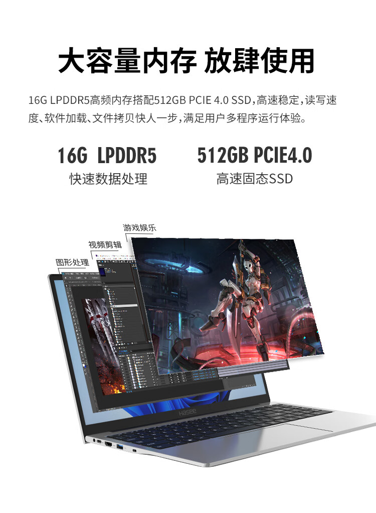 电脑、办公  > 电脑整机  > 笔记本  >  神舟/HASEE  >  神舟(HASEE)优雅X5-15.6英寸轻薄本办公本笔记本电脑(酷睿Ultra5 125H 16GB 512G WiFi6)银 优雅X5/个