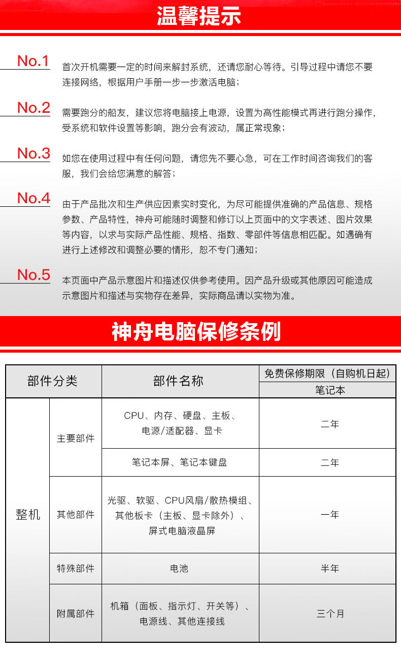 包装清单: 笔记本电脑×1 电源适配器×1 用户手册×1