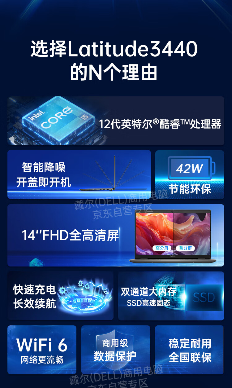 电脑、办公  > 电脑整机  > 笔记本  >  戴尔/DELL  >  戴尔(DELL)Latitude3420升级款3440 14英寸商用办公学生轻薄手提笔记本电脑 i3-1215U 8G 512G 高分屏/定制 Latitude 智锐 3440/台