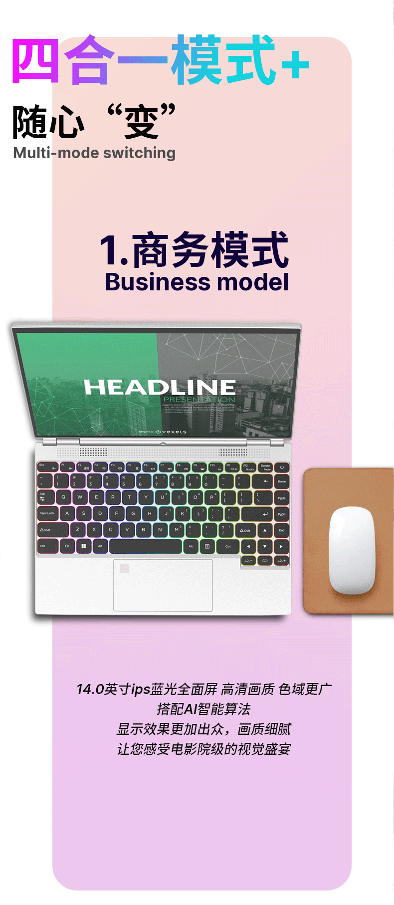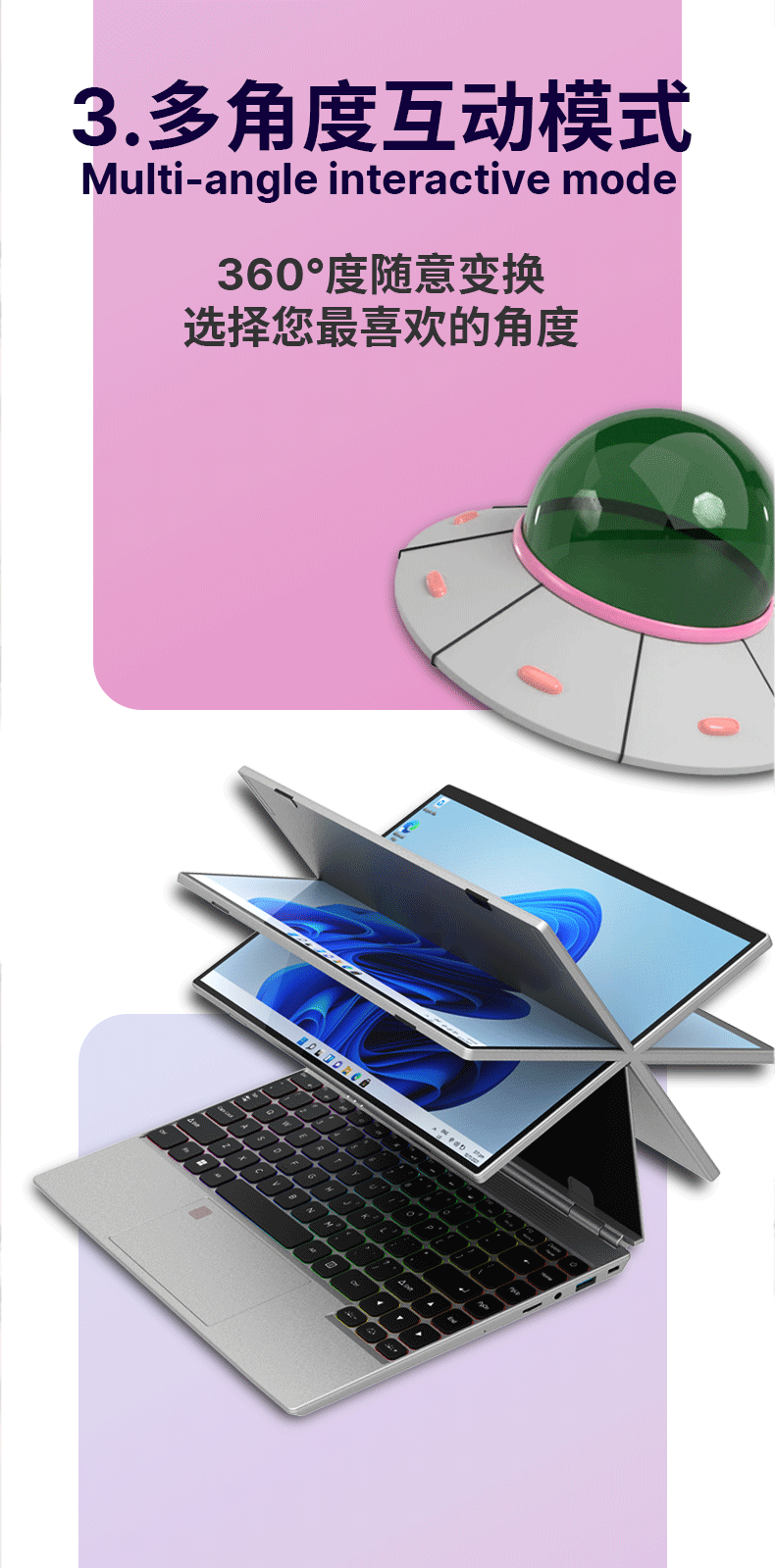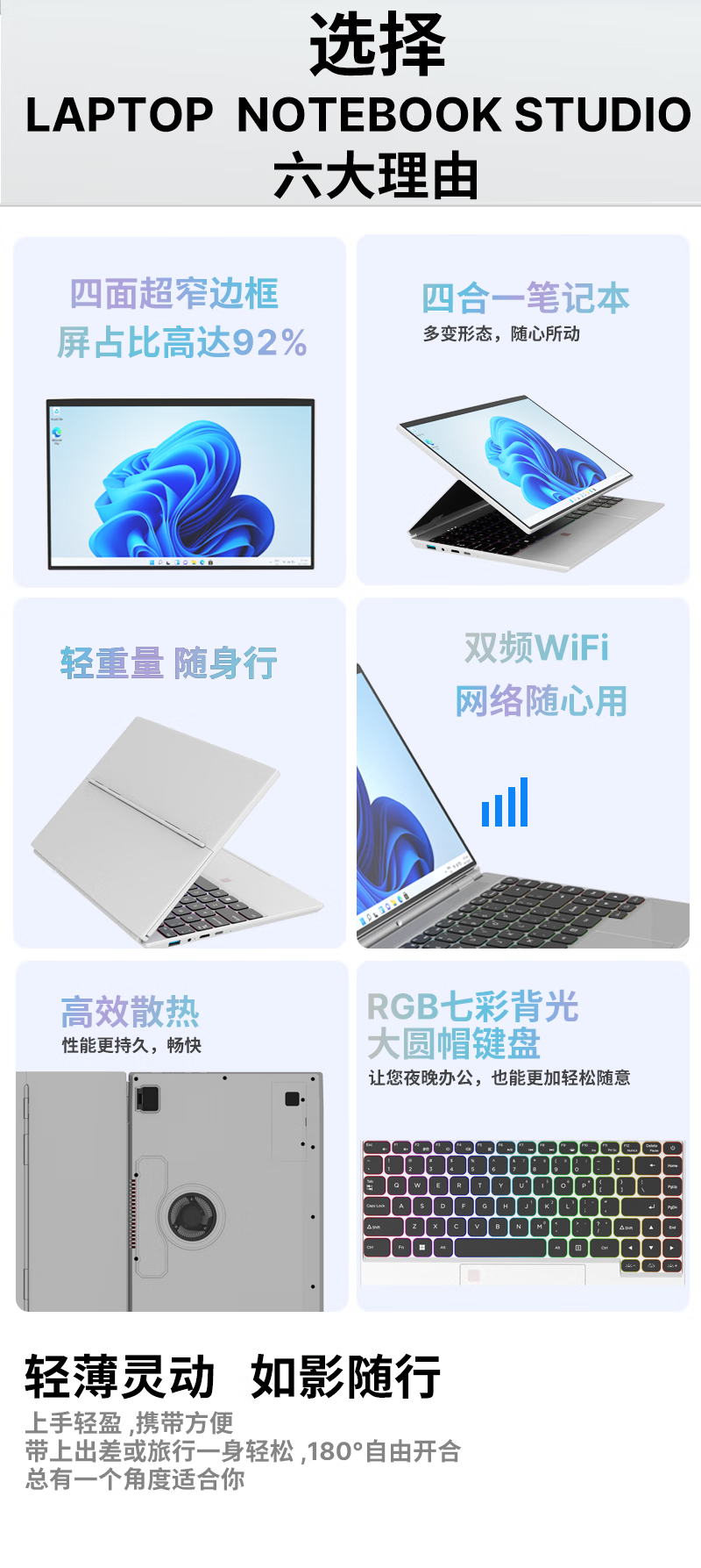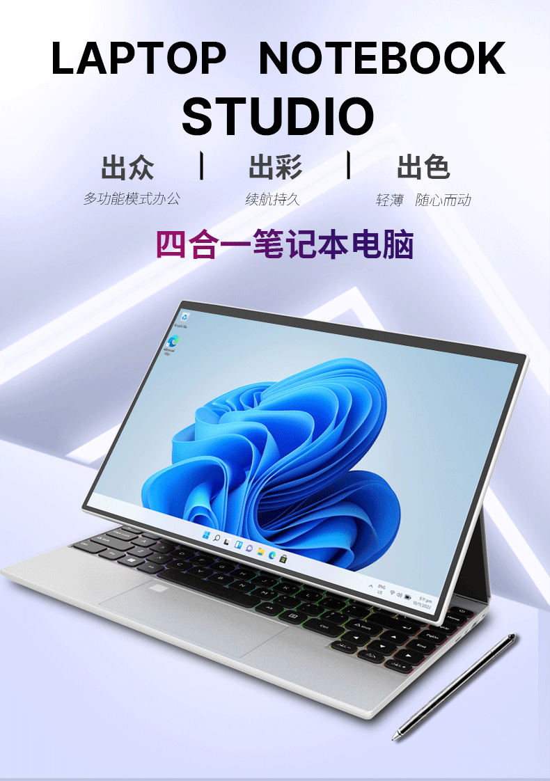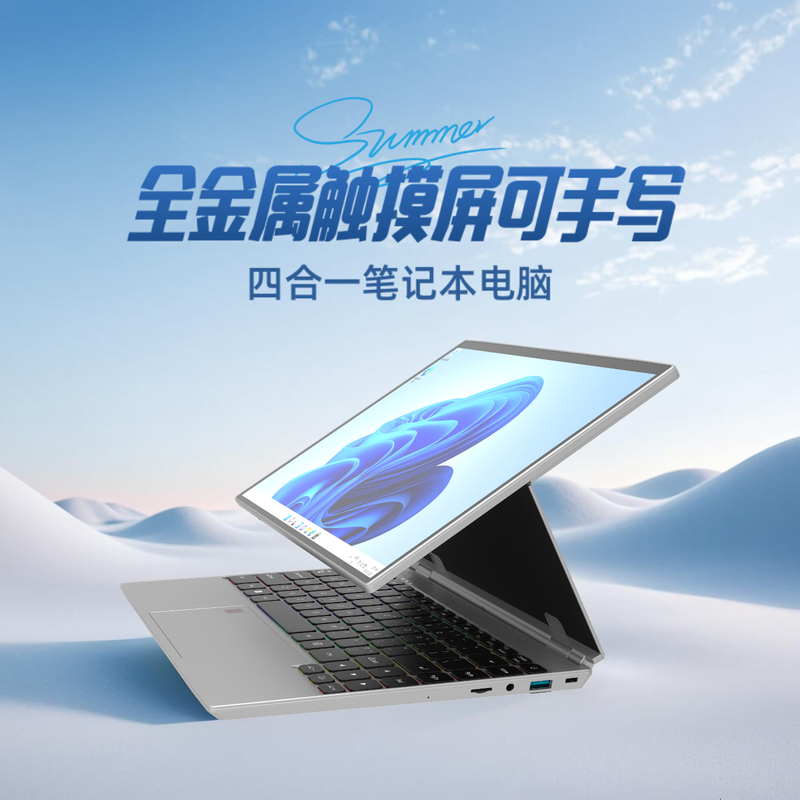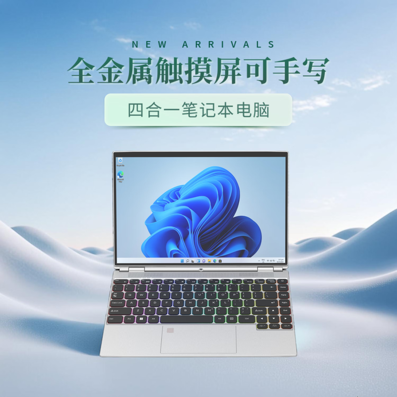 电脑、办公  > 电脑整机  > 笔记本  >  得峰  >  得峰全金属高清触摸屏笔记本电脑 指纹 STUDIO四合一180度开合 超窄边框大屏全尺寸背光键盘16GB/512G V8/台