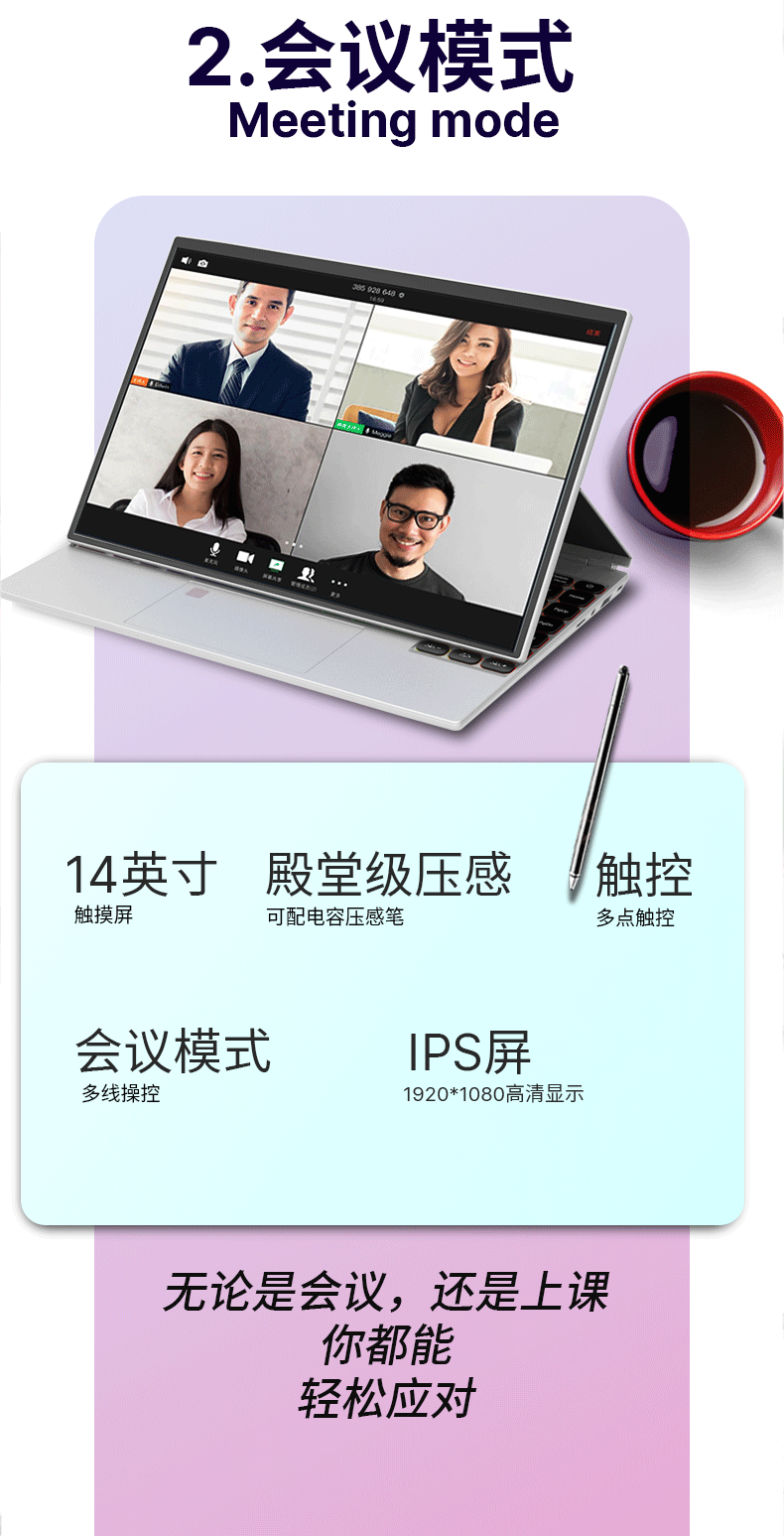 商品名称: 得峰全金属高清触摸屏笔记本电脑 指纹 STUDIO四合一180度开合 超窄边框大屏全尺寸背光键盘16GB/512G V8/台