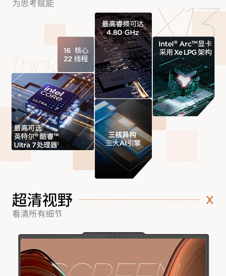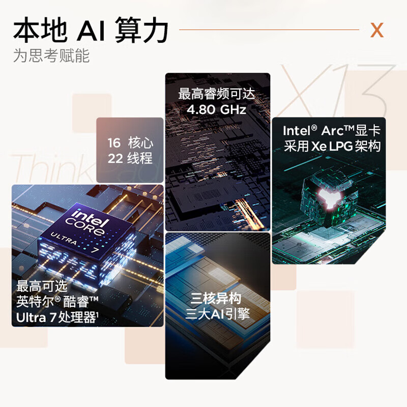 电脑、办公  > 电脑整机  > 笔记本  >  ThinkPad  >  ThinkPad 联想 X13 全能版 商务办公笔记本电脑 酷睿AI Ultra5-125H 16G 512G Win11 PC轻薄本 X13/台