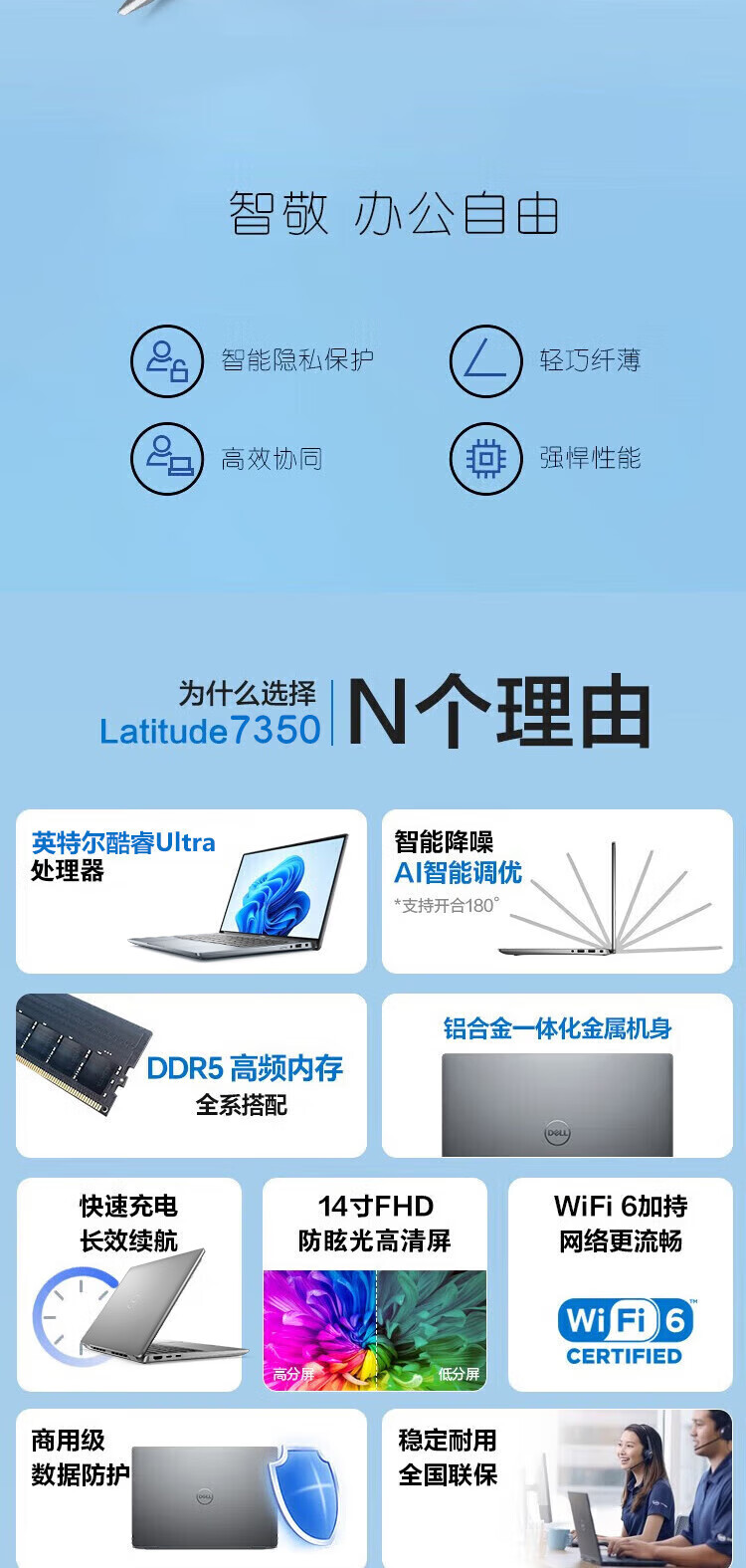 电脑、办公  > 电脑整机  > 笔记本  >  戴尔/DELL  >  戴尔(DELL)Latitude7350笔记本电脑 商用办公13.3英寸高端AI性能轻薄本Ultra5 135U 16G 1T固 高分屏/定制 Latitude 7350/台