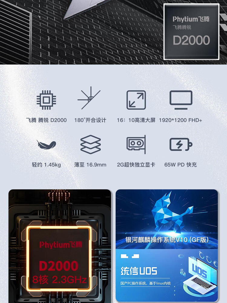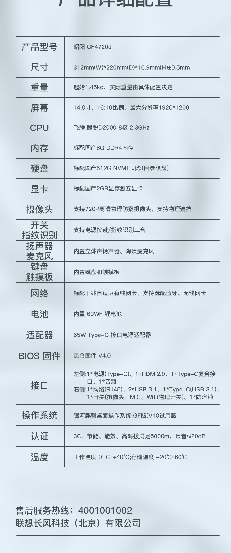 电脑、办公  > 电脑整机  > 笔记本  >  联想/ThinkBook  >  联想(Lenovo)国产信创自主可控 昭阳CF4720J笔记本电脑 飞腾D2000 8G 512G固态带盘控 2G独显 麒麟V10GF试用版 昭阳CF4720J/台