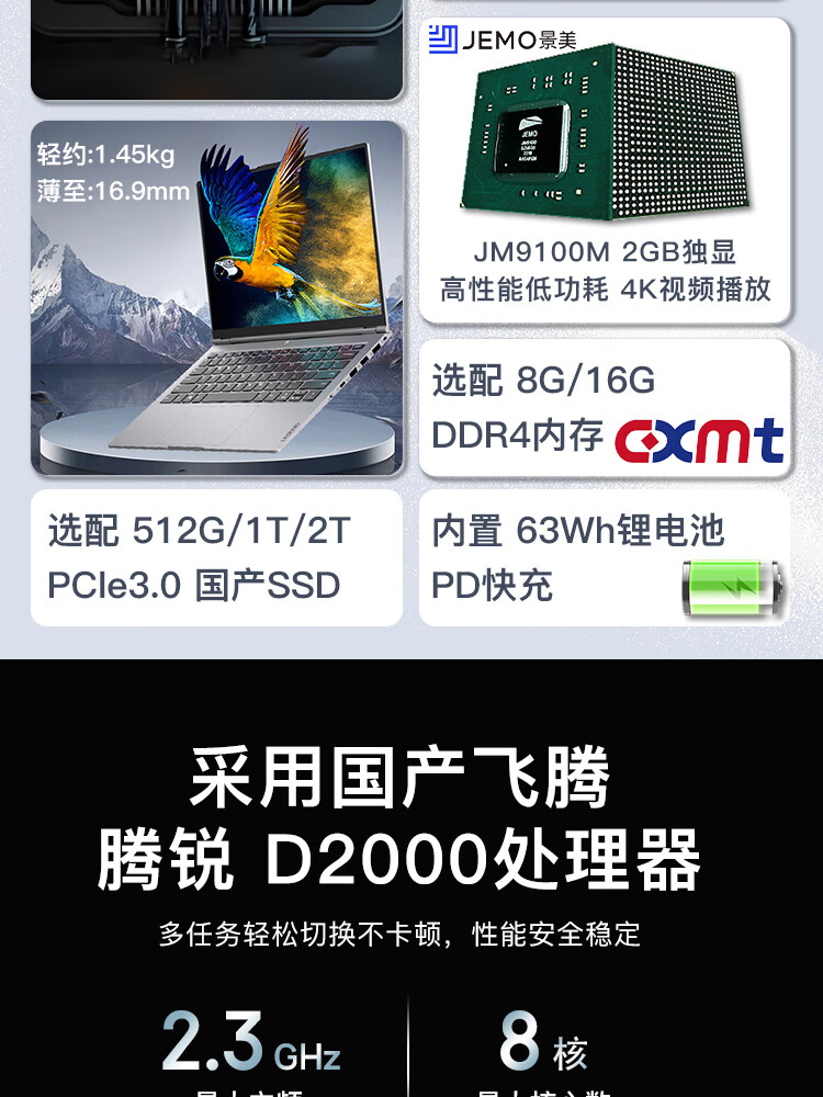 商品名称: 联想(Lenovo)国产信创自主可控 昭阳CF4720J笔记本电脑 飞腾D2000 8G 512G固态带盘控 2G独显 麒麟V10GF试用版 昭阳CF4720J/台
