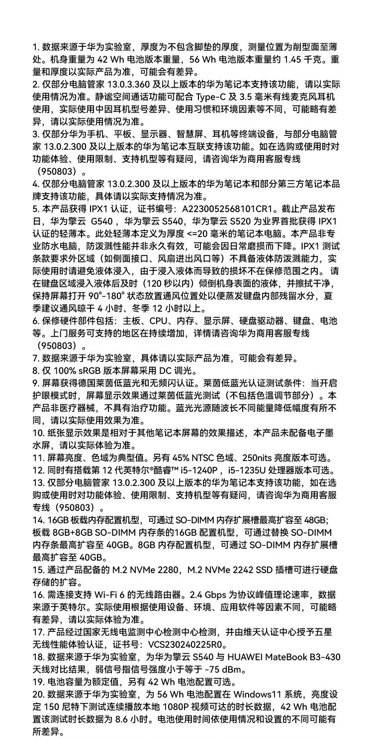 电脑、办公  > 电脑整机  > 笔记本  >  华为/HUAWEI  >  华为笔记本电脑 擎云S540/S520 定制版 i5-1240P 16G内存 1T固态硬盘 核芯显卡(集成显卡) 14英寸 擎云 S540/台