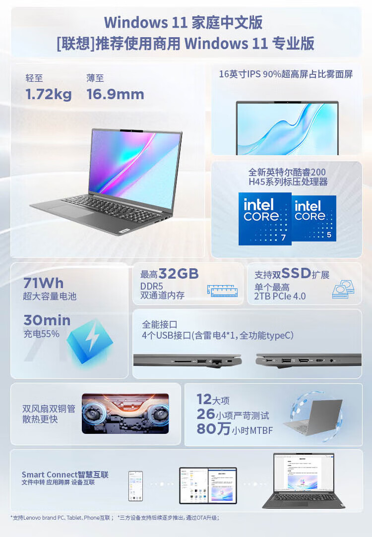 商品名称: 联想(Lenovo)昭阳X3-14 14英寸高性能轻薄本core5-210H 16G 1TBSSD 集显 高分屏 win11家庭版 2年保修 含包鼠 联想X3/台