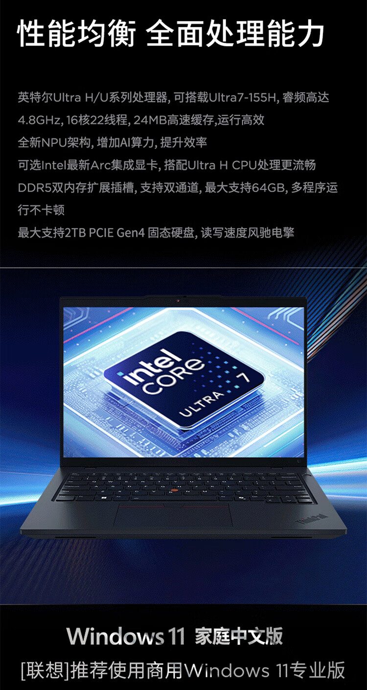 • 商品名称:ThinkPad L14 AIPC Ultra7-155U/96G内存/4TB固态/集显/联想14英寸屏AI创作商务办公学习笔记本定制升级 L14/套