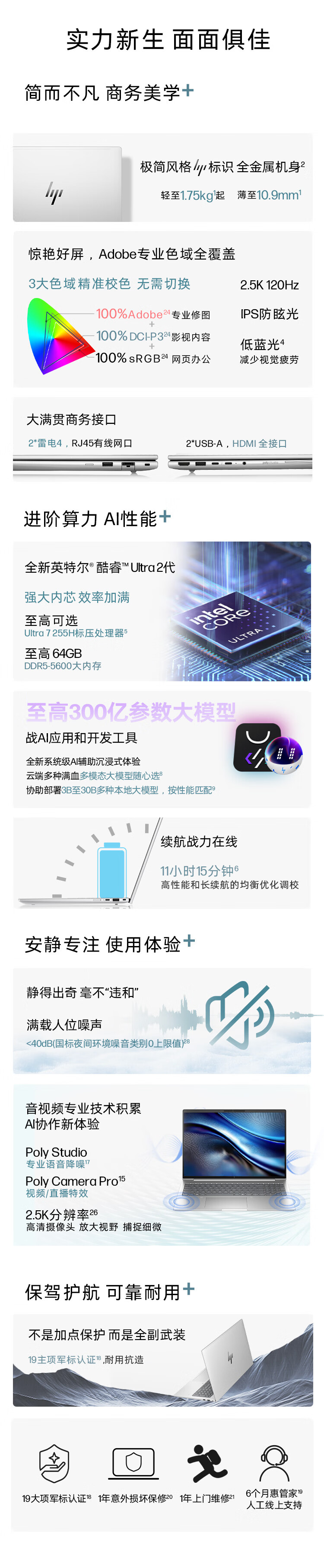 电脑、办公  > 电脑整机  > 笔记本  >  惠普/HP  >  惠普(HP)战66+系列16英寸2025轻薄办公笔记本电脑二代酷睿Ultra7 255H 24G 1T 2.5K 1年意外险 战66/台