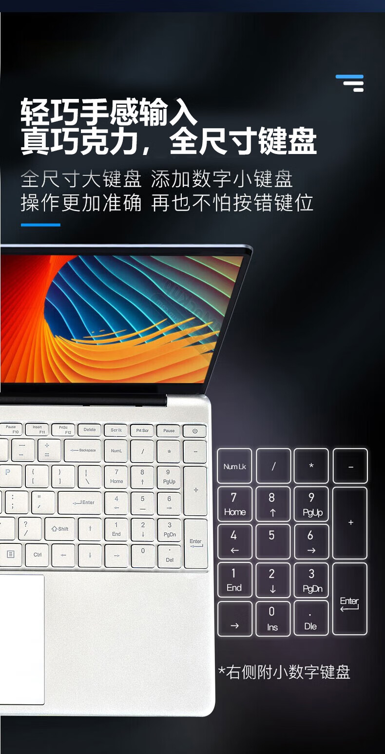 • 商品名称:得峰15.6英寸大屏全尺寸背光键盘 补贴 英特尔游戏笔记本电脑 13代超轻薄性能本 固态硬盘256G D3/台