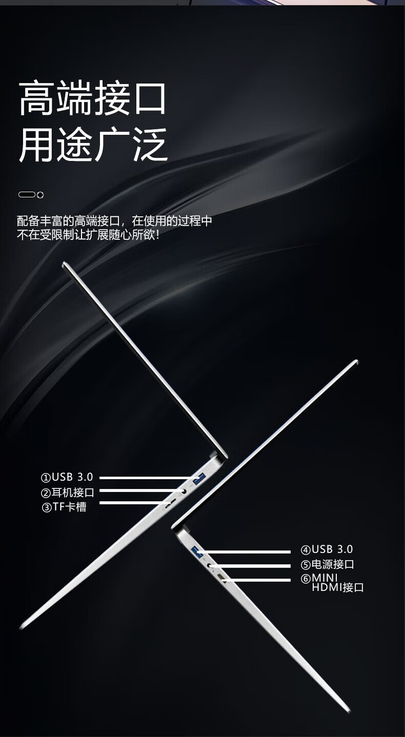 包装清单: 便携式笔记本电脑X1 电源适配器 X1 说明书X1 保修卡X1 合格证X1 8GB优盘X1