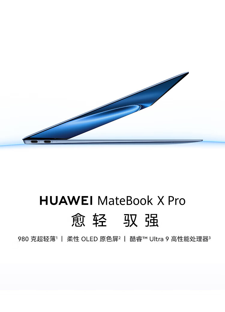 电脑、办公  > 电脑整机  > 笔记本  >  华为/HUAWEI  >  华为MateBook X Pro酷睿 Ultra 微绒典藏版笔记本电脑 980克超轻薄/OLED原色屏 Ultra9 32G 2T 晴蓝 MateBook X Pro/台