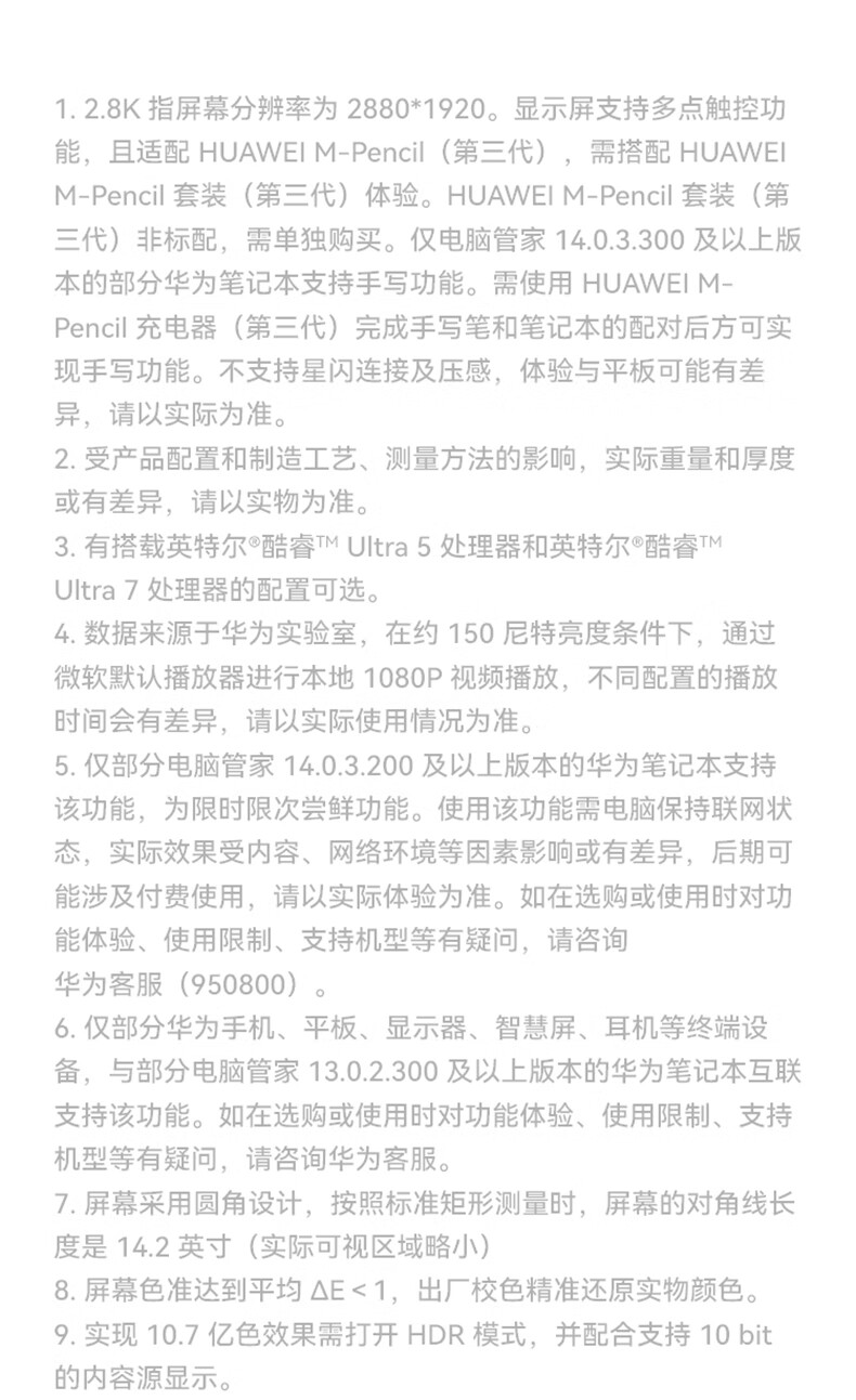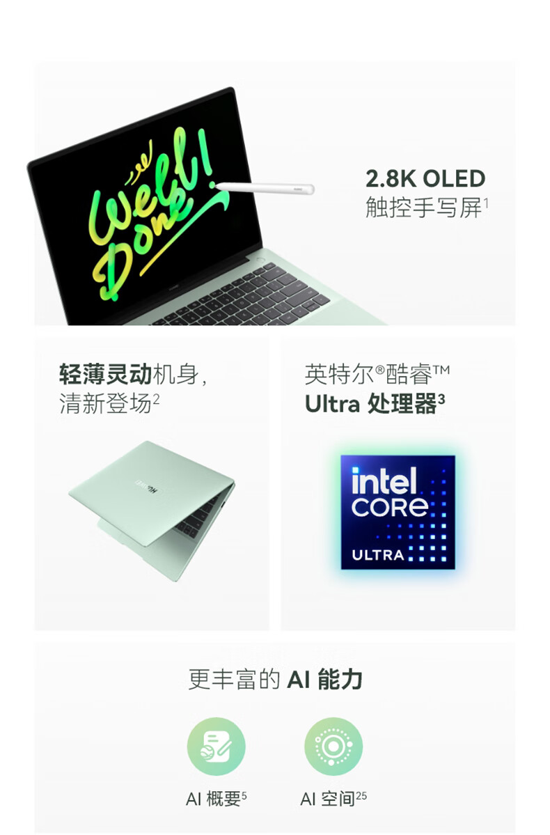 • 商品名称:华为MateBook 14 酷睿 Ultra 轻薄笔记本电脑 2.8K OLED触控手写屏 Ultra 5 16G 1T 皓月银 MateBook 14/台