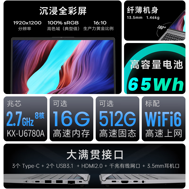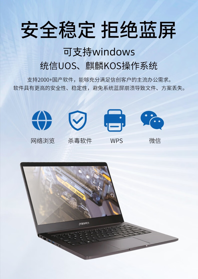 • 商品名称:清华同方信创笔记本电脑 超锐TZ611 国产化办公 兆芯U6780A 16G 512G 麒麟/统信 国产试用 可改Win10 超锐TZ611-V3/台