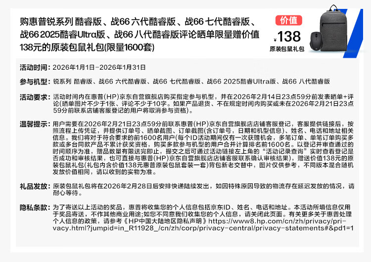 • 商品名称:惠普(HP)战66 六代14英寸轻薄笔记本电脑 酷睿高性能13代i5 32G 1TB 高色域低蓝光 AI 战66/台