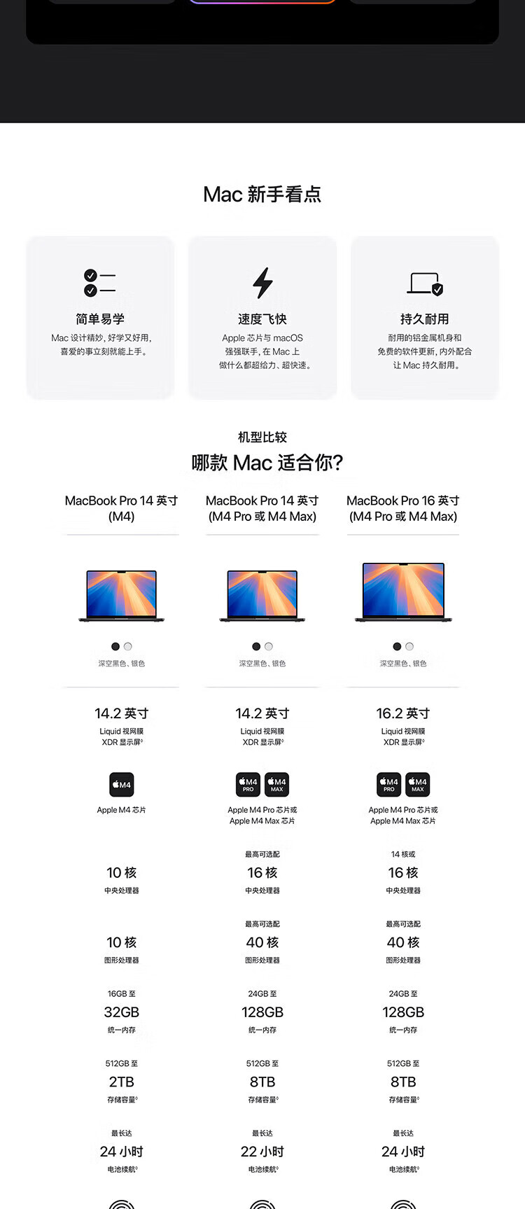 商品名称: Apple/苹果 MacBook Pro 14.2英寸 AI笔记本电脑 M4(10核CPU+10核GPU)16GB内存 512GB固态硬盘 深空黑 MacBook Pro/台