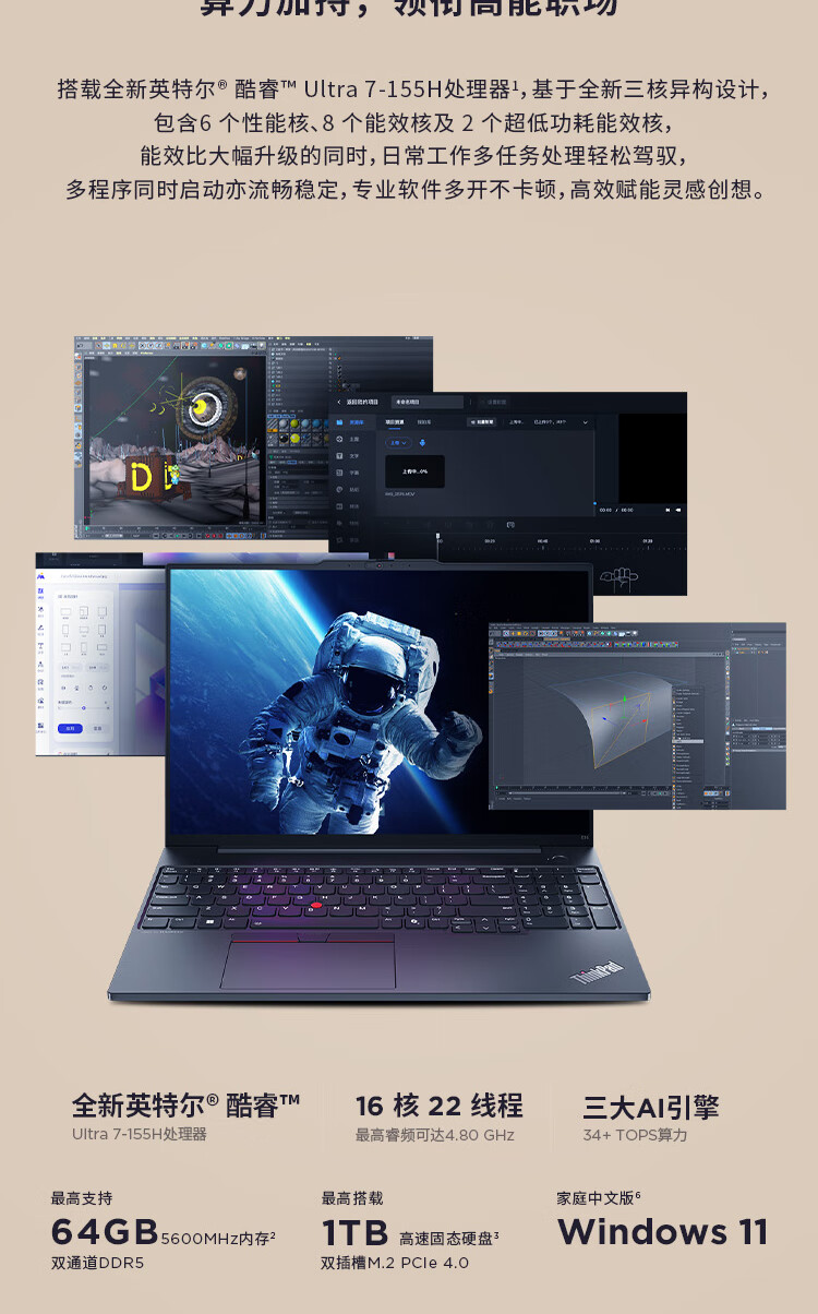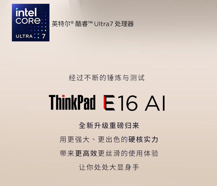 电脑、办公  > 电脑整机  > 笔记本  >  ThinkPad  >  ThinkPadE16 AI PC 联想轻薄便携笔记本电脑 酷睿Ultra7 32G 1TB 2.5K 商务办公本 黑色 E16/台