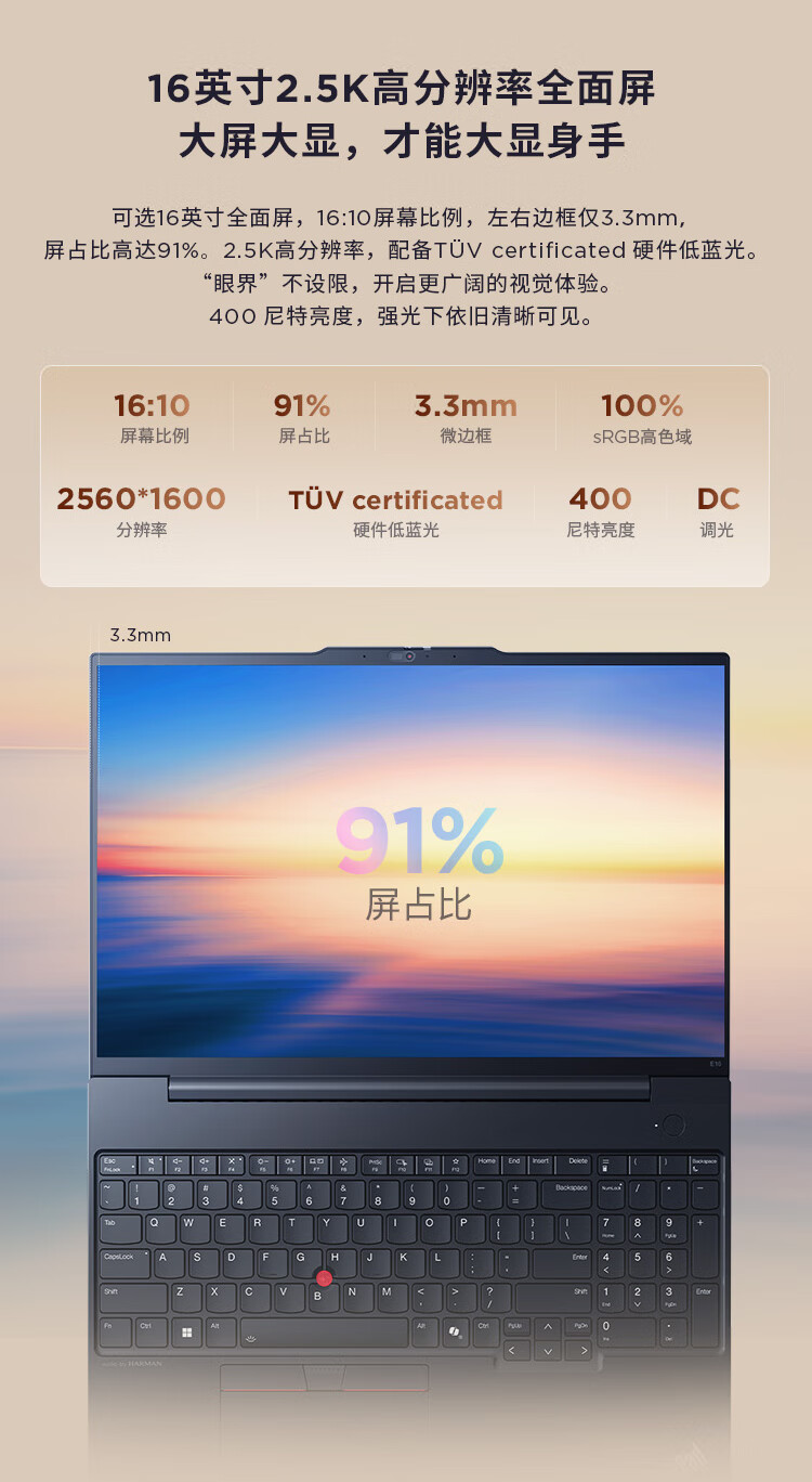 ThinkPadE16 AI PC 联想轻薄便携笔记本电脑 酷睿Ultra7 32G 1TB 2.5K 商务办公本 黑色 E16/台