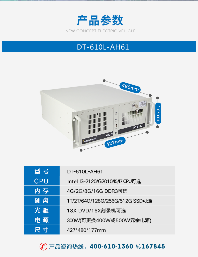 • 商品名称:Dongtintech东田酷睿3代原装工控机支持XP研华主板工业电脑主机【DT-610L-AH61】/I5-3470/4G/1T/300W/赠键鼠 DT-610L-AH61/台