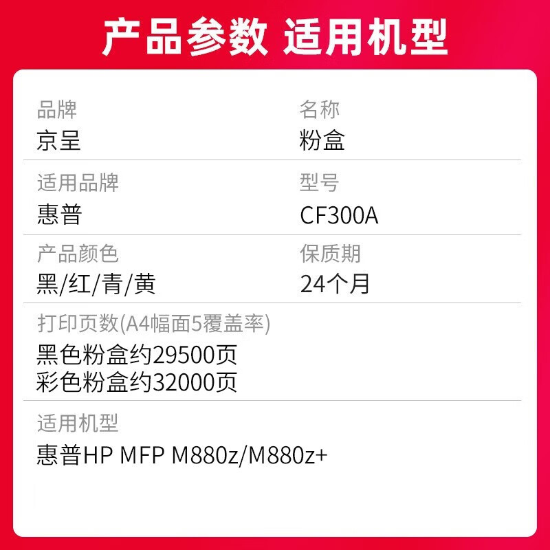 商品名称: 京呈CF300A粉盒适用惠普827A粉盒HP M880z M880z+ M880z+NFC打印机墨盒【政企采购】CF300A/827A四色粉盒套装 CF300A/827A/套