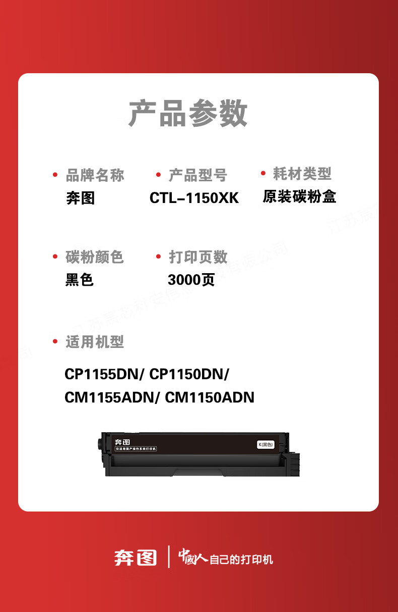 商品名称: 奔图CTL-1150XK原装高容粉盒3000页 黑色碳粉盒 适用于CM1150ADN/CM1155ADN/CP1150DN/CP1155DN打印机耗材 墨盒 硒鼓 CTL-1150XK/支