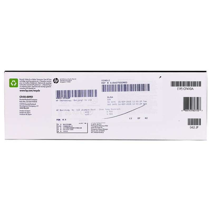 商品名称: 惠普(HP)410A(CF410A)原装硒鼓黑色单支装(适用hp M452DN/m377dw/M452DW/M452NW/477fnw)打印页数2300 CF410A/支