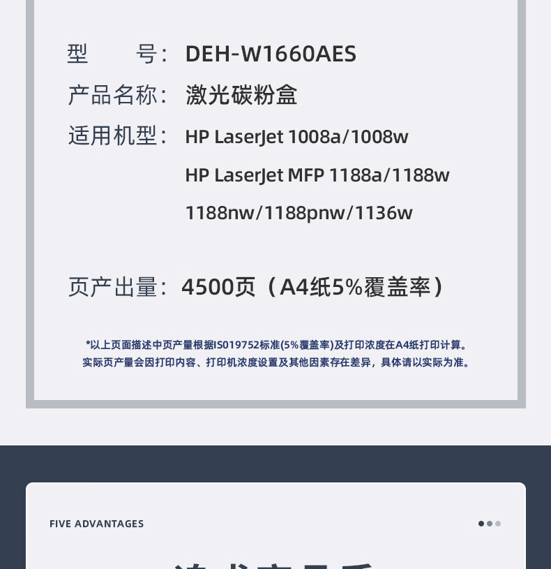 商品名称: 得力(deli)166a硒鼓 1660a硒鼓适用惠普1136w硒鼓 1188w/1188nw/1188a/1008w打印机粉盒 大容量4500页畅享版 1660A/个