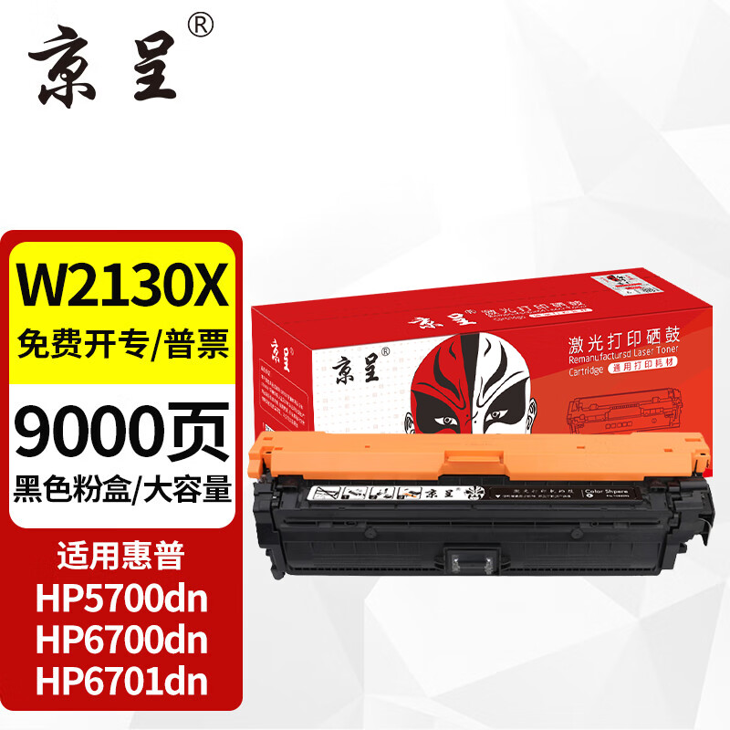 商品名称: 京呈W2130A硒鼓适用惠普5700dn 6700dn 6701墨粉5800 6800zfw+彩色打印机 【9000页】W2130X 大容量黑色硒鼓 W2130A/支