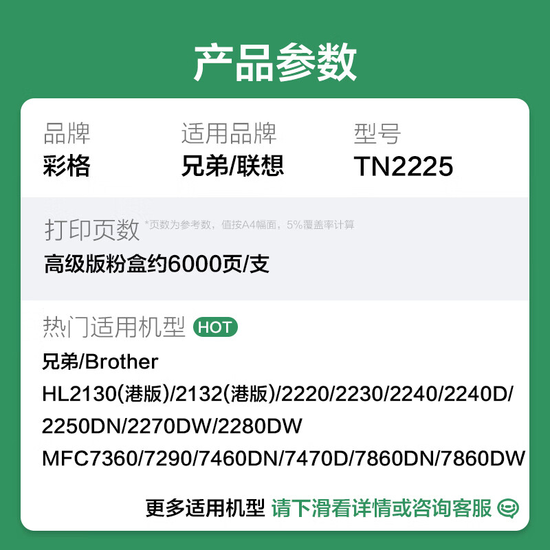 电脑、办公  > 办公耗材  > 硒鼓  >  彩格  >  彩格TN2225粉盒适用兄弟MFC7360 7470D 7860DN硒鼓DCP7057 7060D FAX2890HL2240D 2250DN TN2215 TN420打印机墨盒 TN-2225/支