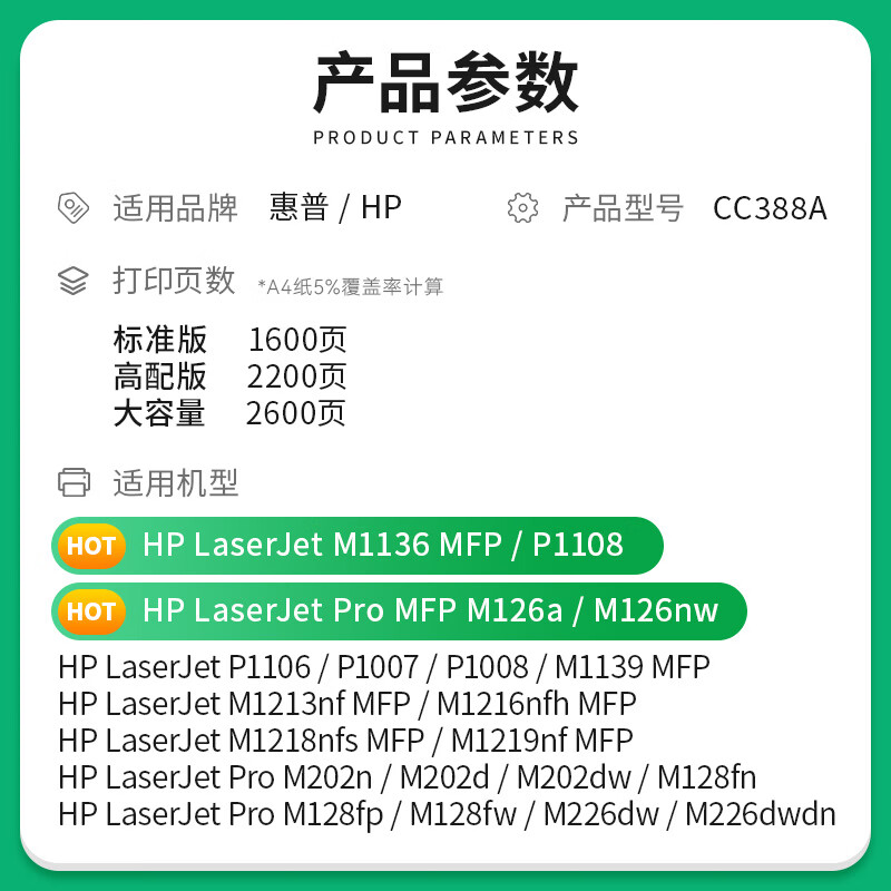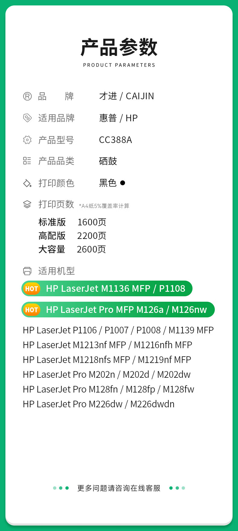 • 商品名称:才进适用hp惠普m126a碳粉Laserjet Pro MFP m126nw激光打印机硒鼓hp126a原装复印一体机墨粉盒m126专用碳粉盒 碳粉 惠普M126a/nw 120克1支装/瓶