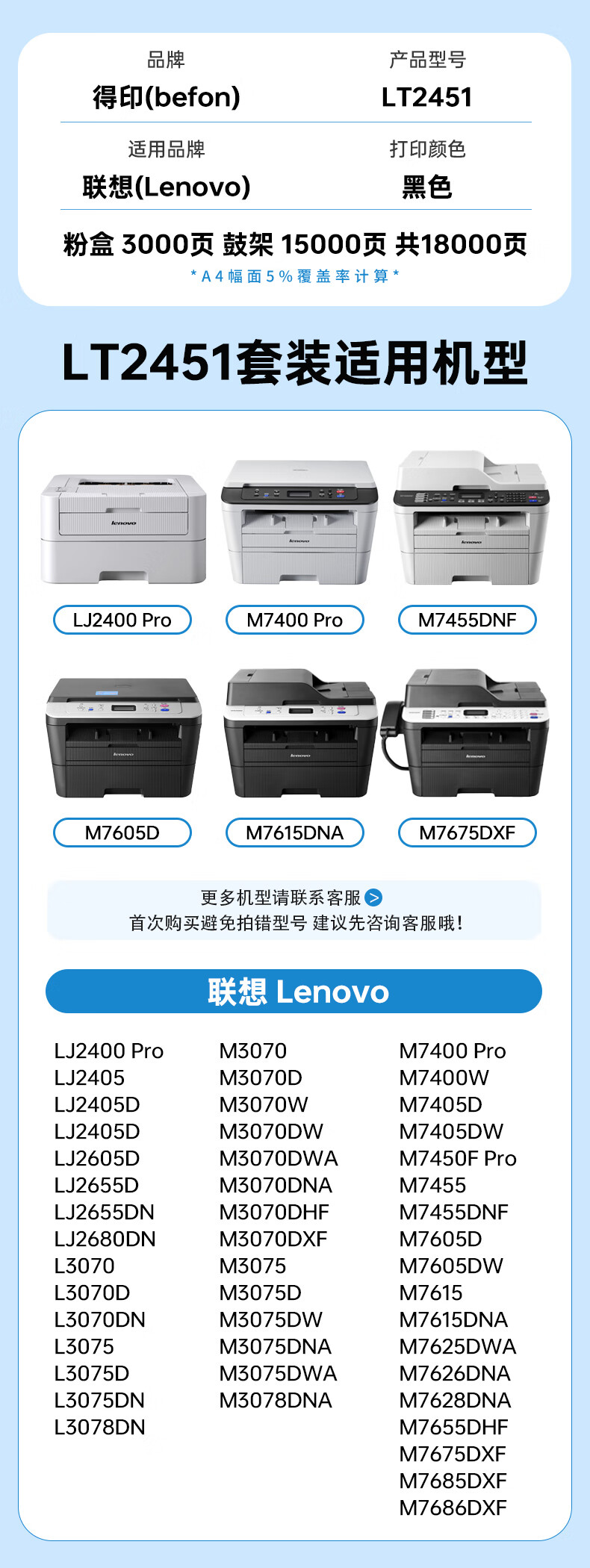 电脑、办公  > 办公耗材  > 硒鼓  >  得印/befon  >  得印 LD2451硒鼓+LT2451粉盒套装 适用联想M7605D M7615 M7400pro LJ2655 LJ2605 M7675 M7405 M7655墨盒 LD2451硒鼓+粉盒套装/套